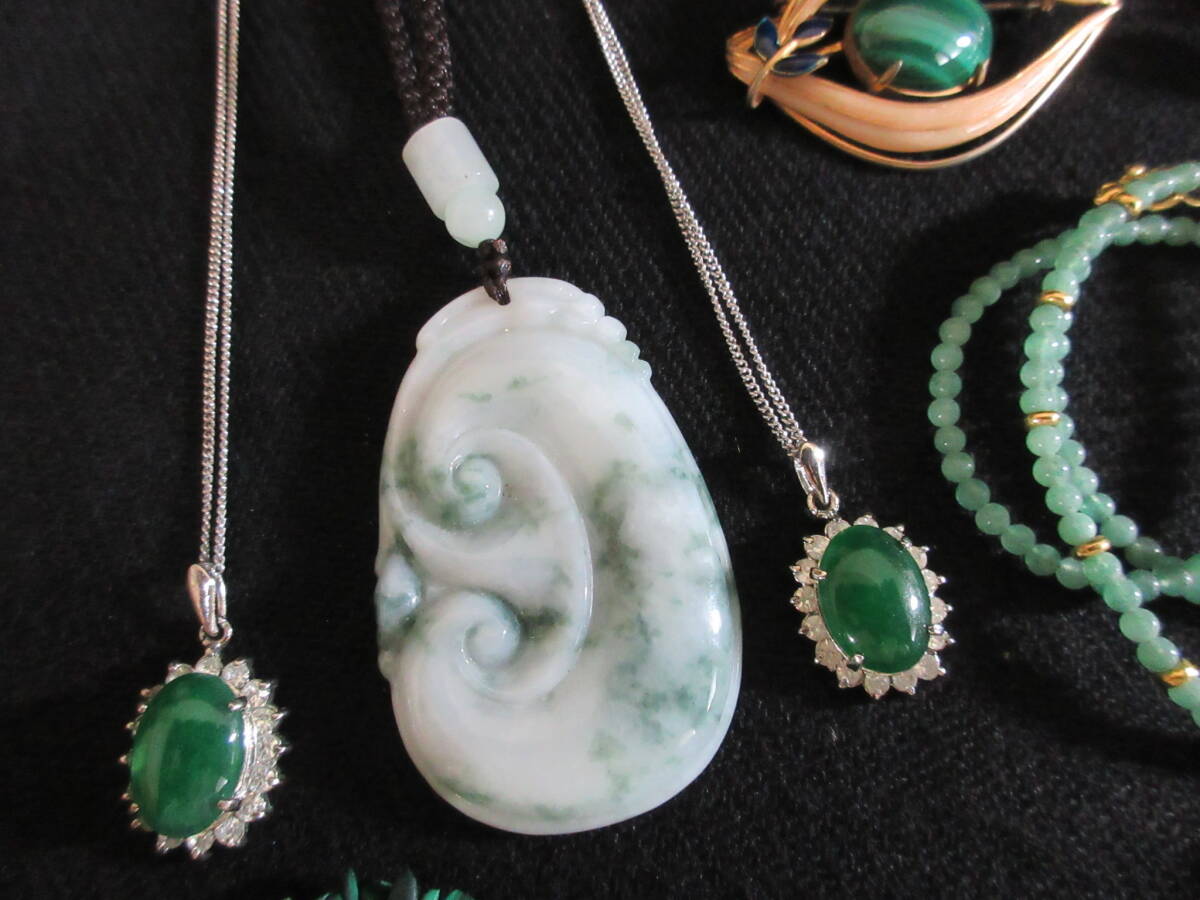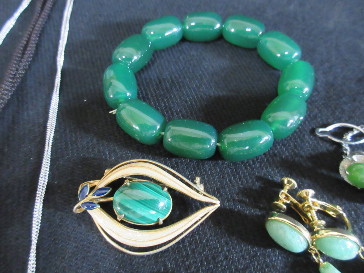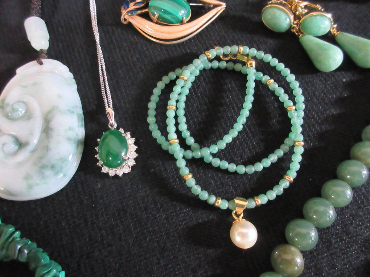 *100円~【天然石】パワーストーン 緑石 アベンチュリン/ネフライト/マラカイト/ヒスイ/他 アクセサリー色々 15点セット*K-77