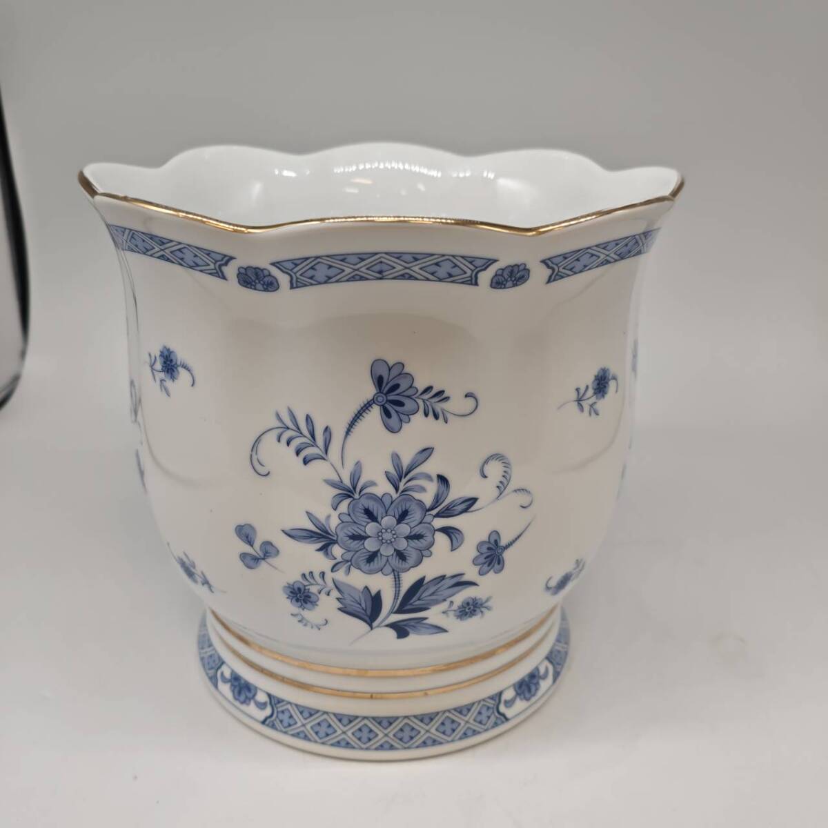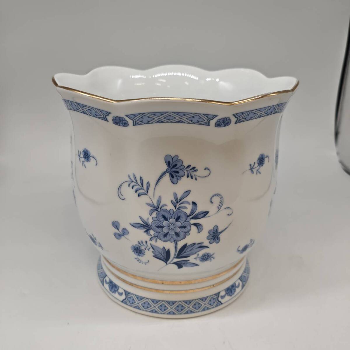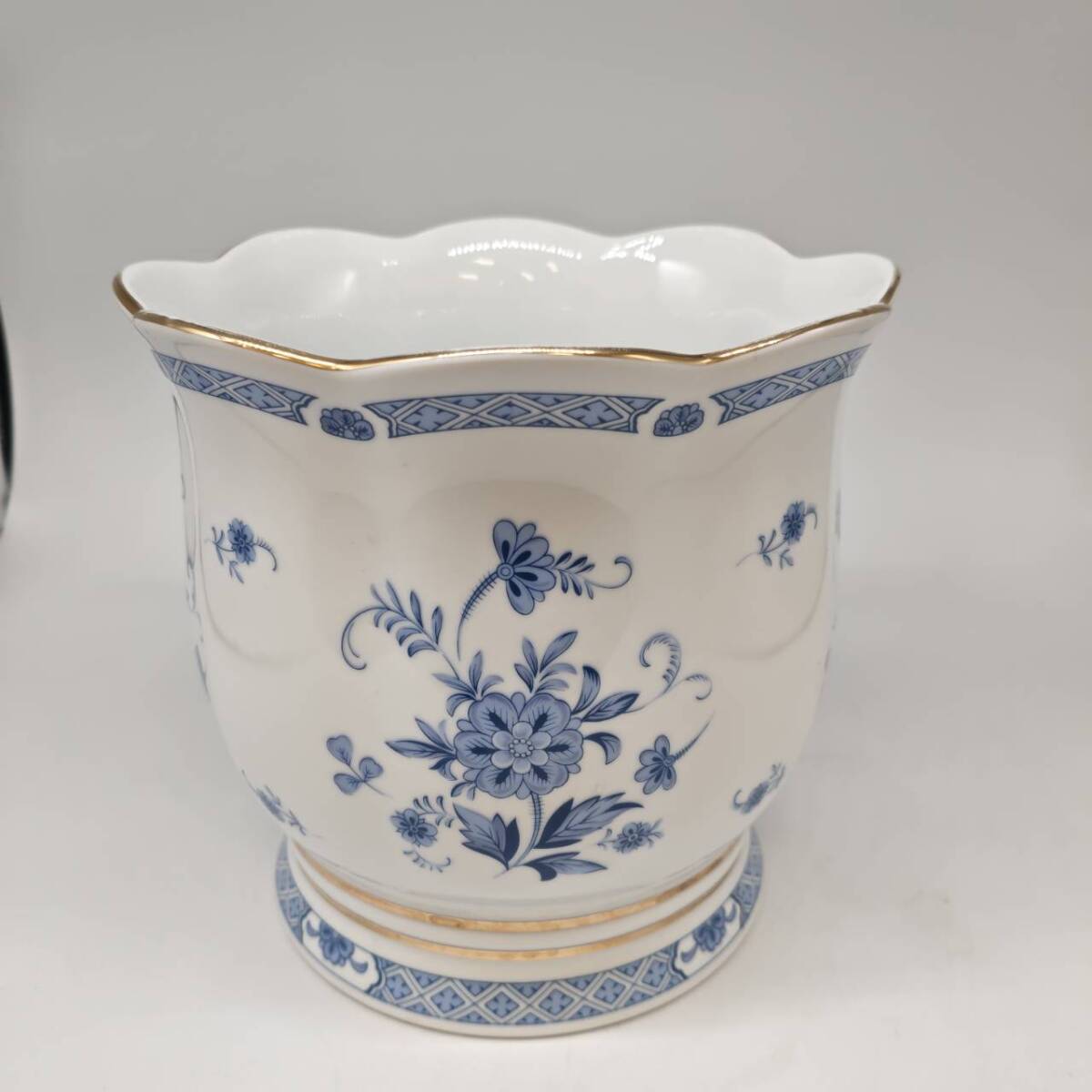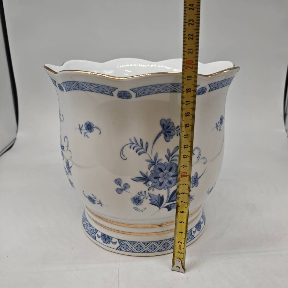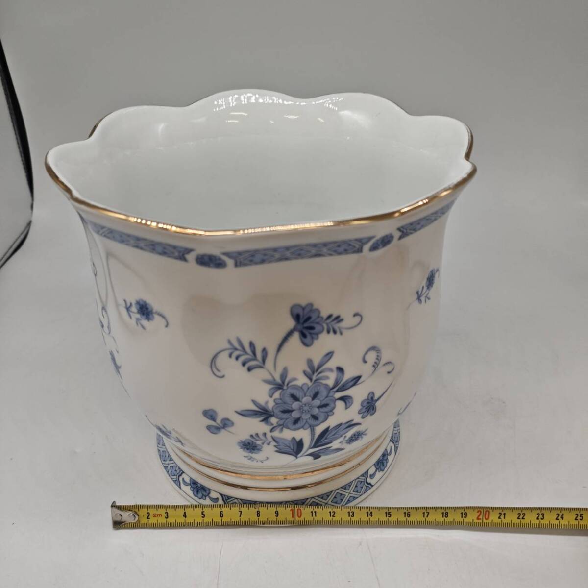 商品名:KS10718● Nagoya Shokai 名古屋商会 花瓶 深鉢 容器 花器 花入 焼き物 壷 アンティーク 金縁 壷物 ブルー インテリア 置物【0】