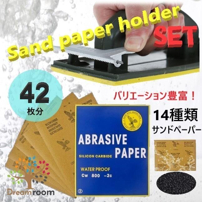 すぐに使えるお得なset☆ クリップ式 ハンドサンダー セット &サンドペーパー 14種 42枚分 紙やすり 研磨 工作 DIY 工具 金属 木工 処理