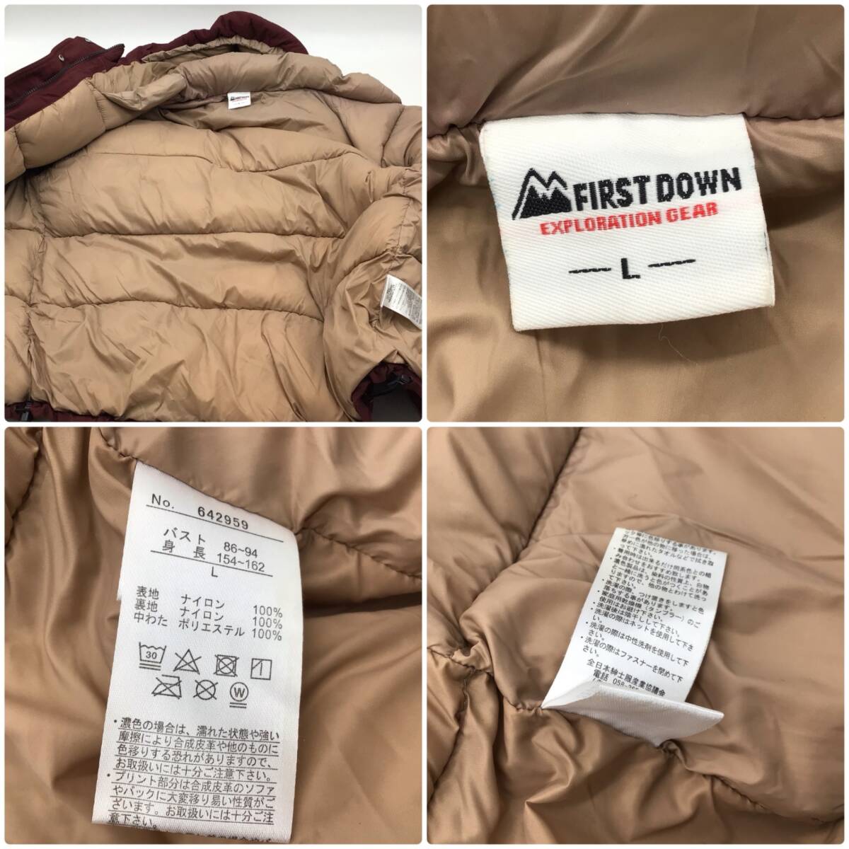 | 商品説明 | ・FIRST DOWN ファーストダウン レディース ダウンジャケット Lサイズ ナイロン 中綿 ボルドー 642959。 ・使用による若干の汚れが有ります。9枚目の写真にて確認ください。 ・全体的にくすみ感もございます。 ・写真にて状態をご判断ください。 |