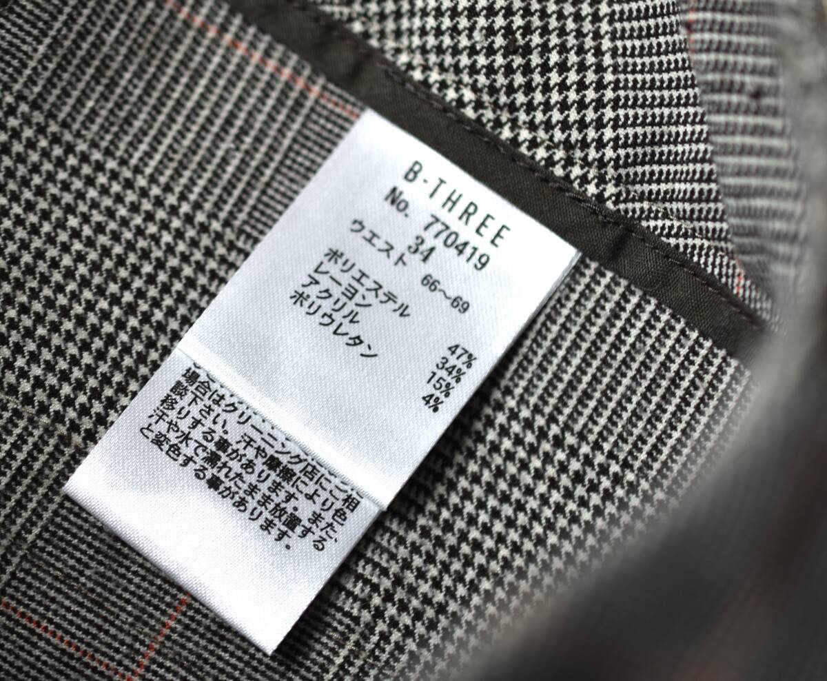 B-THREE ビースリー グレンチェック柄テーパードスリムパンツ サイズ34