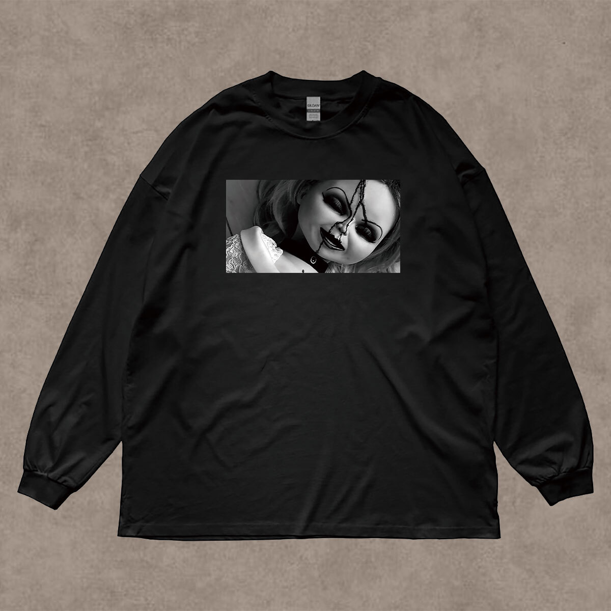 チャイルド・プレイ チャッキーの花嫁 ティファニー・バレンタイン フォトプリント 長袖 Tシャツ ロンT キレイめ カジュアル クロ M L XL