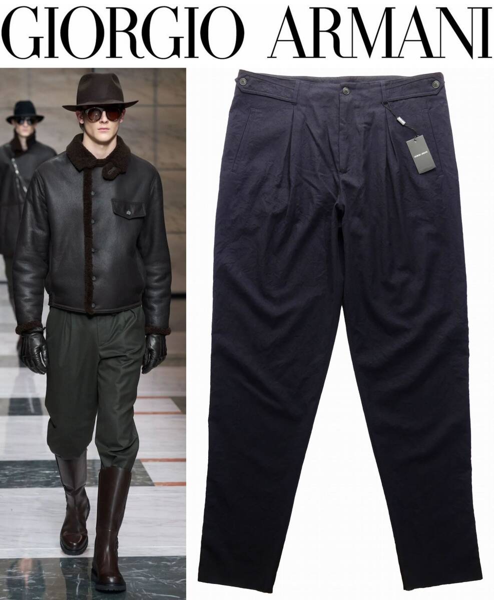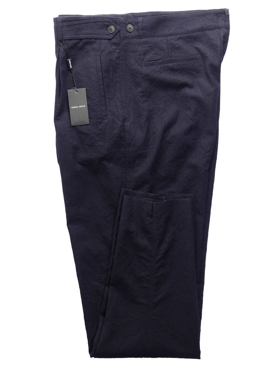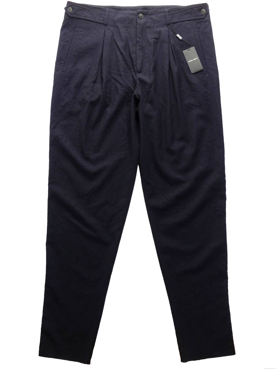 秋冬物新品255,000円GIORGIO ARMANIアルマーニ★ウエストアジャスター付き。皺加工ボックスプリーツ濃紺パンツ【大きいサイズ58=42インチ