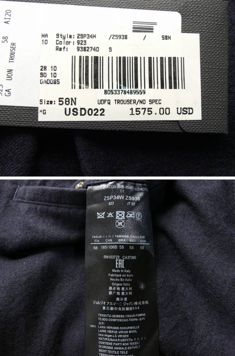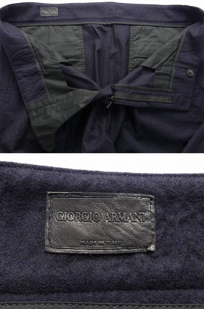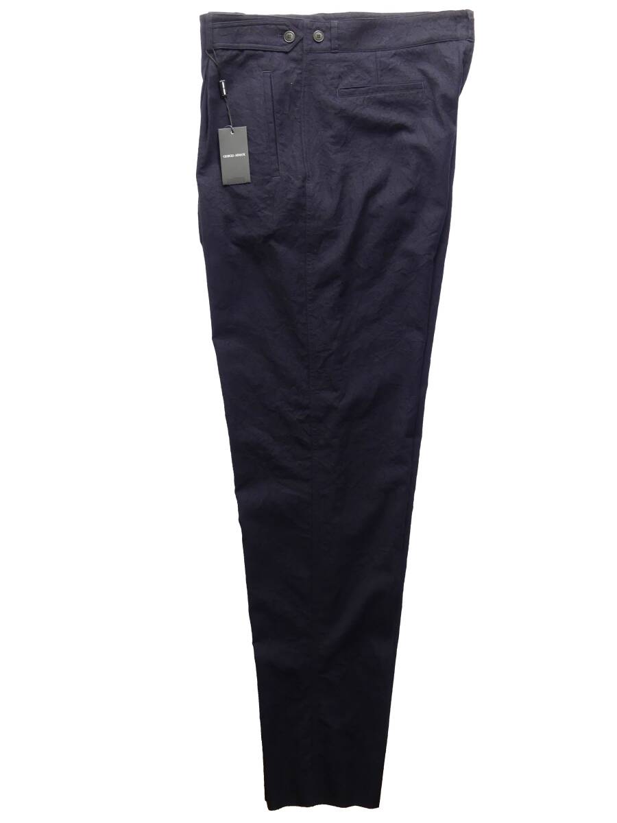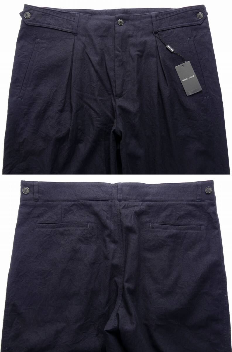 秋冬物新品255,000円GIORGIO ARMANIアルマーニ★ウエストアジャスター付き。皺加工ボックスプリーツ濃紺パンツ【大きいサイズ58=42インチ