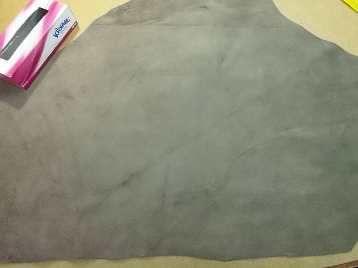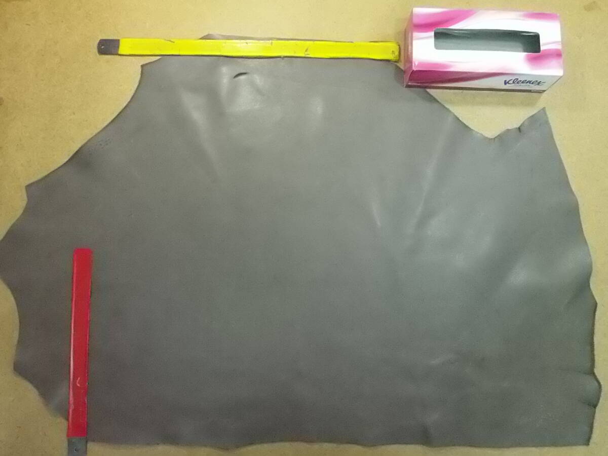 18 牛革はぎれ 地シボ グレー系 表面アニリン仕上げ 1枚 革中央で66cm×97cm程 しっとり キズ等有り 大きいサイズ