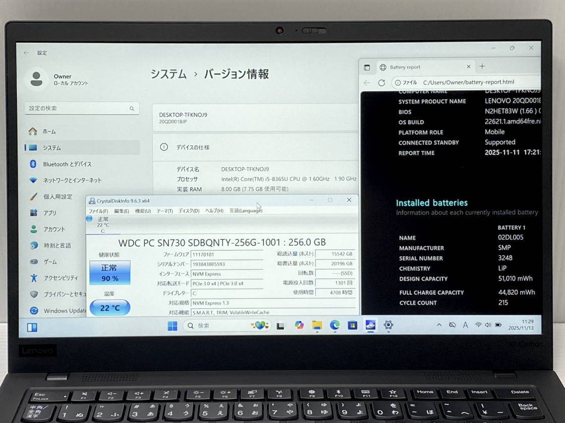 美品 第8世代Core i5 X1 Carbon7 Core i5 8365U 1.6GHz 8GB/NVMe256GB/WiFi/WIN11/WebCam |