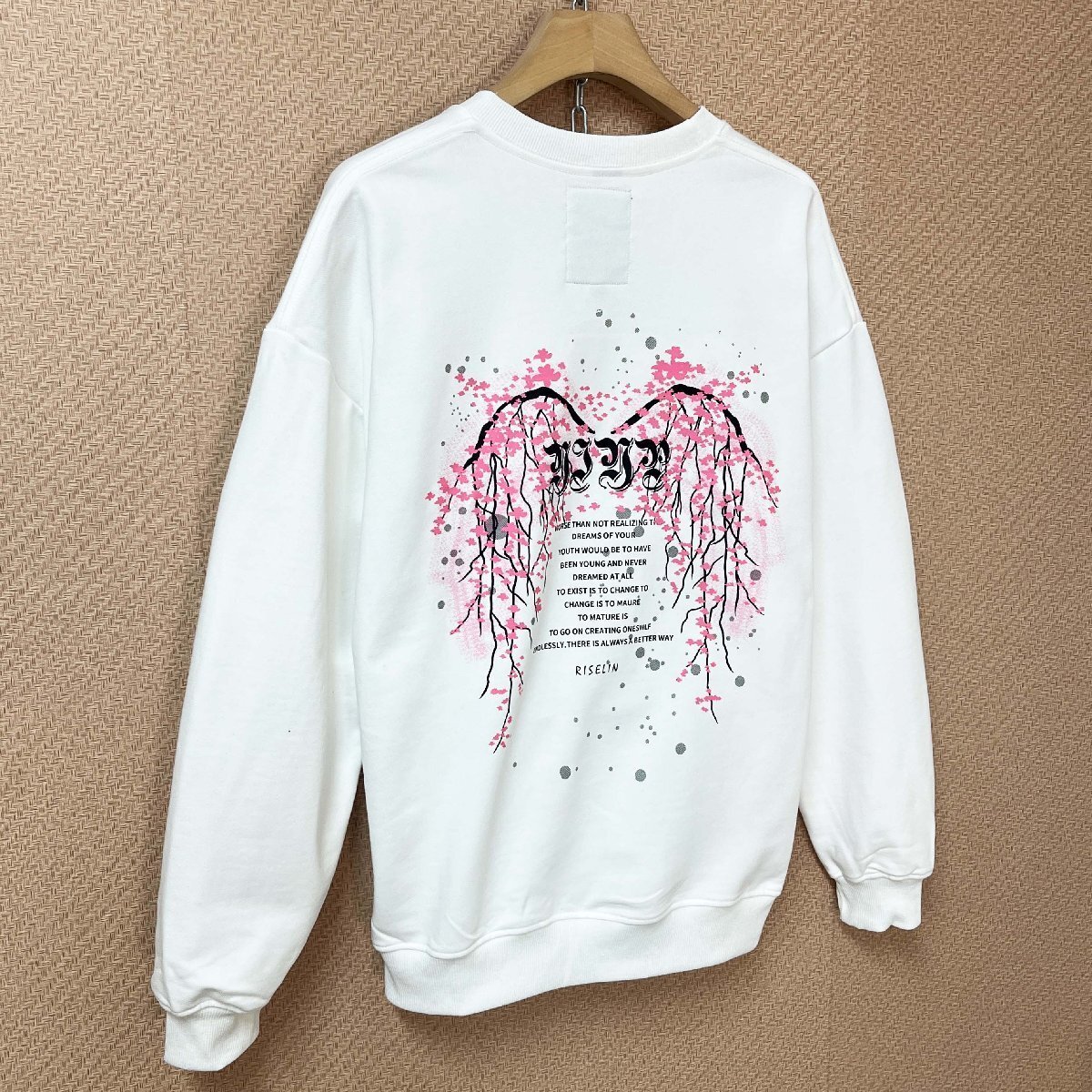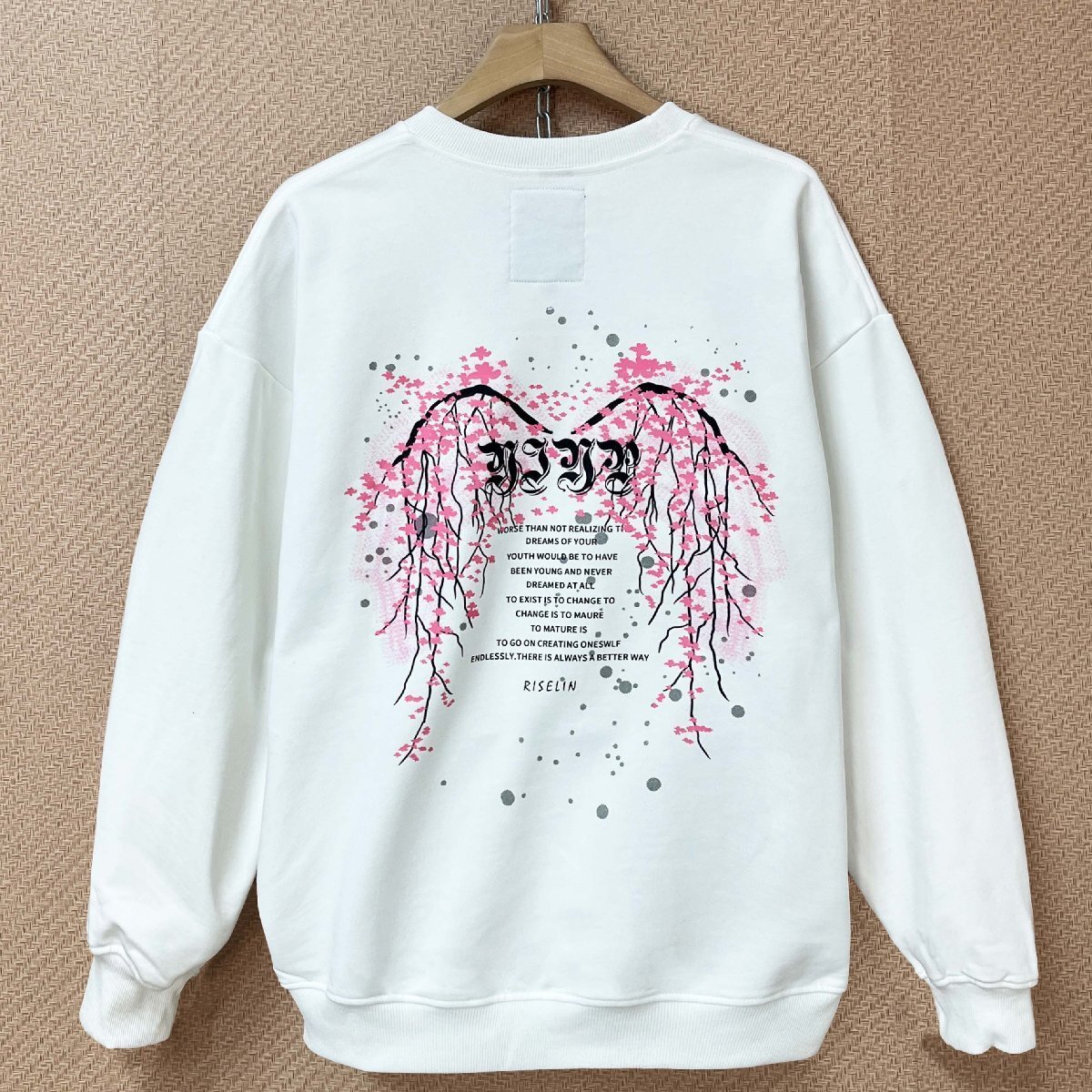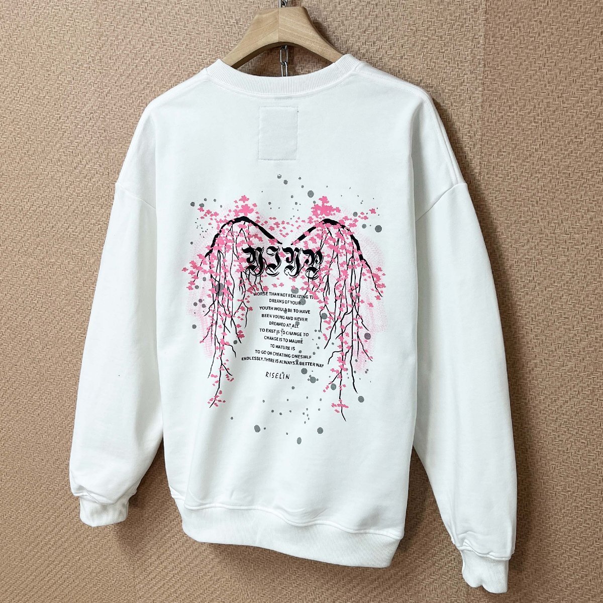 個性ヨーロッパ製※定価4万◆ブルガリア発※RISELIN 長袖 Tシャツ 綿100% 通気 ソフト ウィング 花柄 無地 トレーナー スウェット 普段着 L/48サイズ