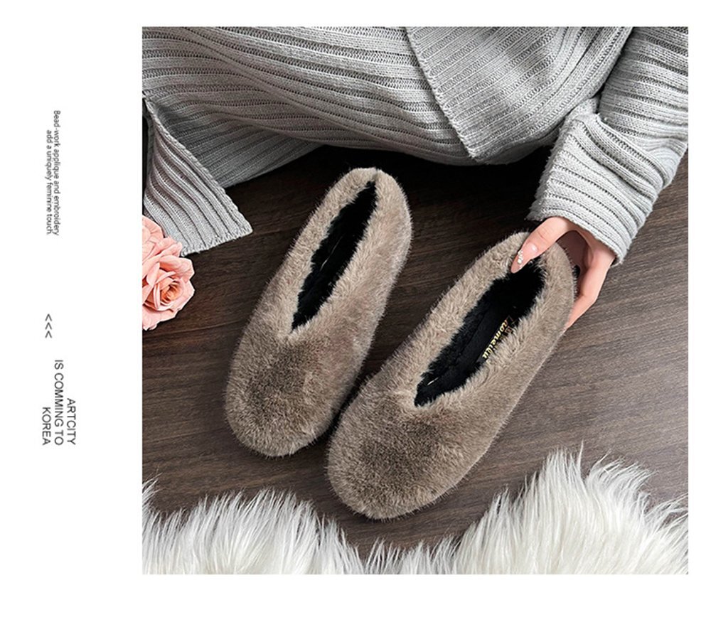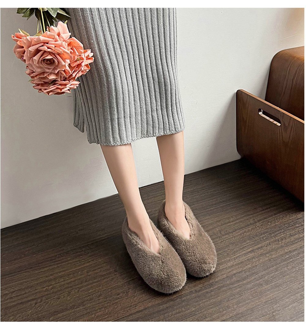 ファーパンプス パンプス レディース 靴 ぺたんこ フラット フラットシューズ ローヒール ラウンドトゥ グレー /24.5cm hw1384.1.24.5cm
