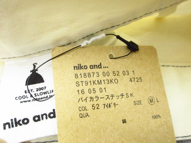 h4572 未使用保管品 タグ付き nikoand バイカラーステッチスカート ロングスカート (株)アダストリア アイボリー Mサイズ 綿100%