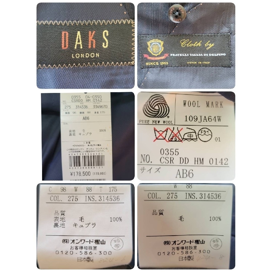 最高級 フラテッリ タリア ディ デルフィノ 定価17万 新品未使用タグ付き ダックス ストライプ スーツ セットアップ DAKS AB6