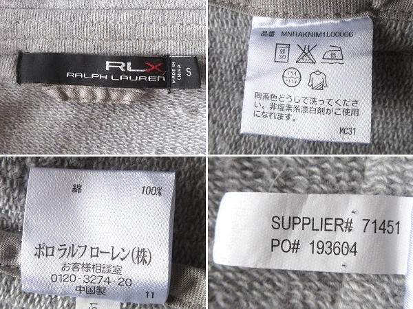 RLX Ralph Lauren ラルフローレン コットン 裏毛 スウェット 2Bテーラードジャケット ブレザー アンコンジャケット S グレー 国内正規品