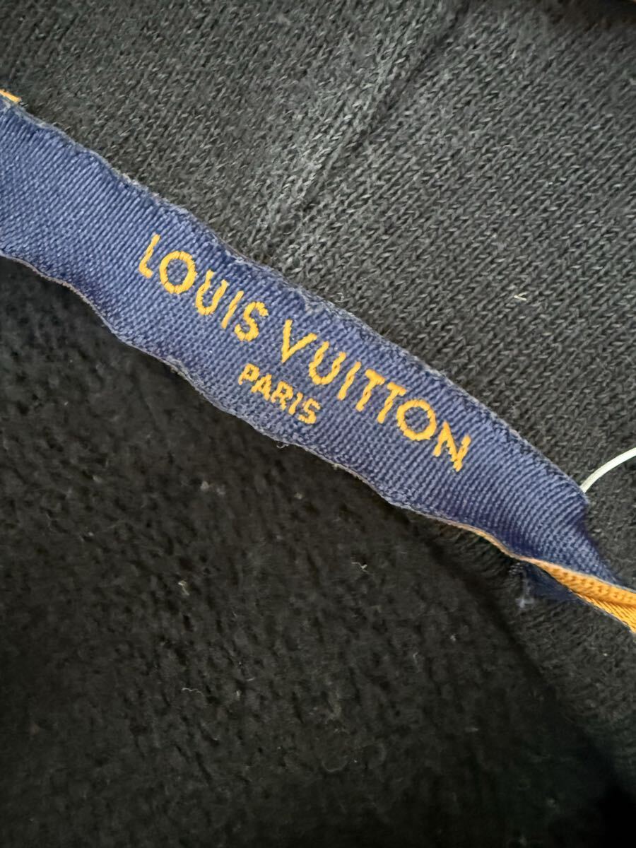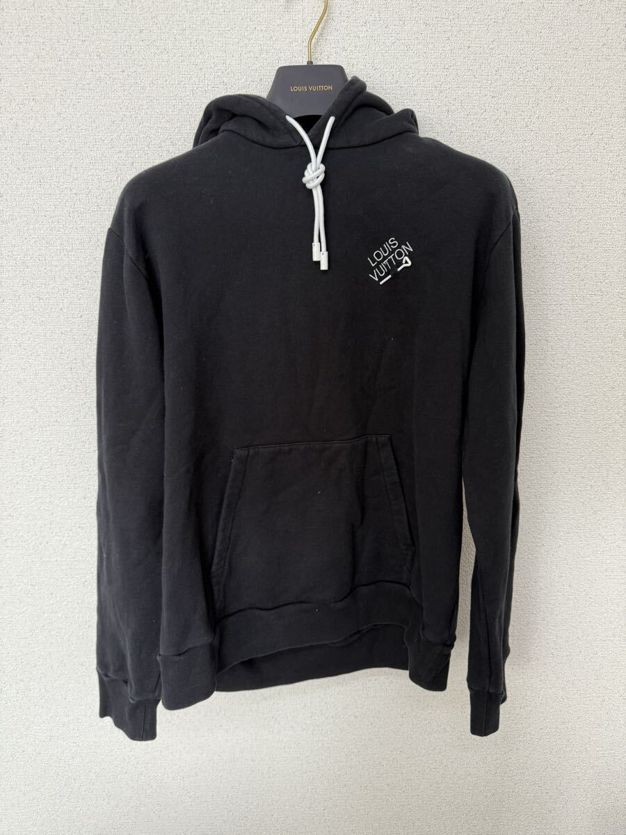 JP3267*LOUIS VUITTON ルイヴィトン ブラック シグネチャーフーディウィズエンブロイダリー パーカー ブラック Lサイズ*
