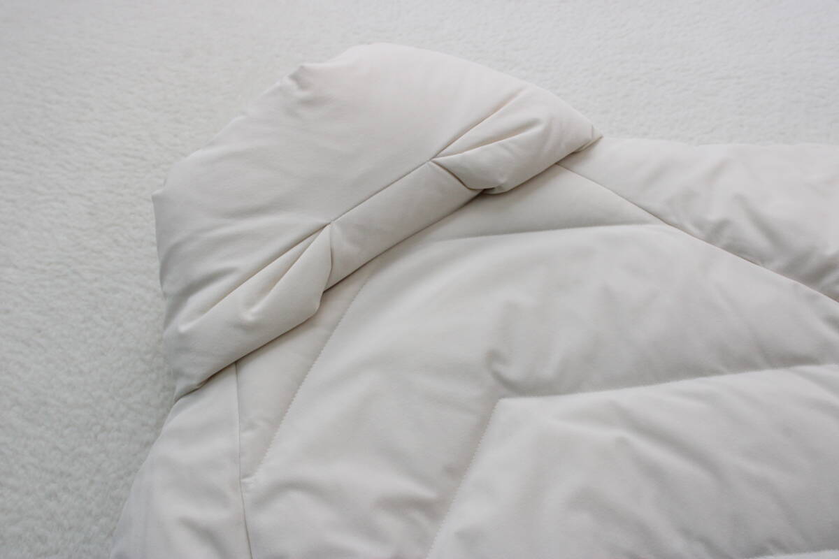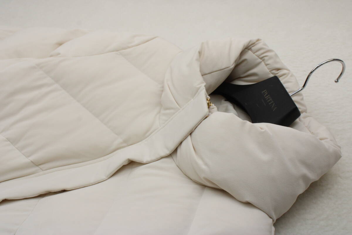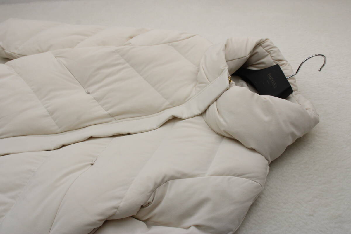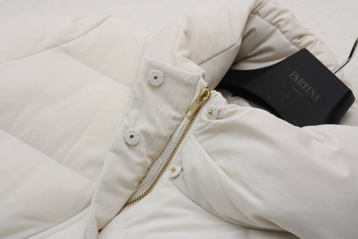 6518 新品 ストレッチカシュネックピュアダウンジャケット アイボリーFサイズ