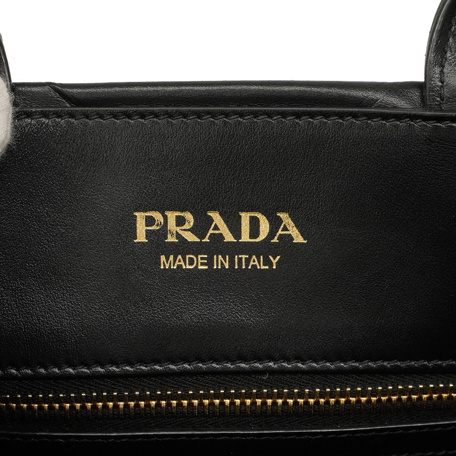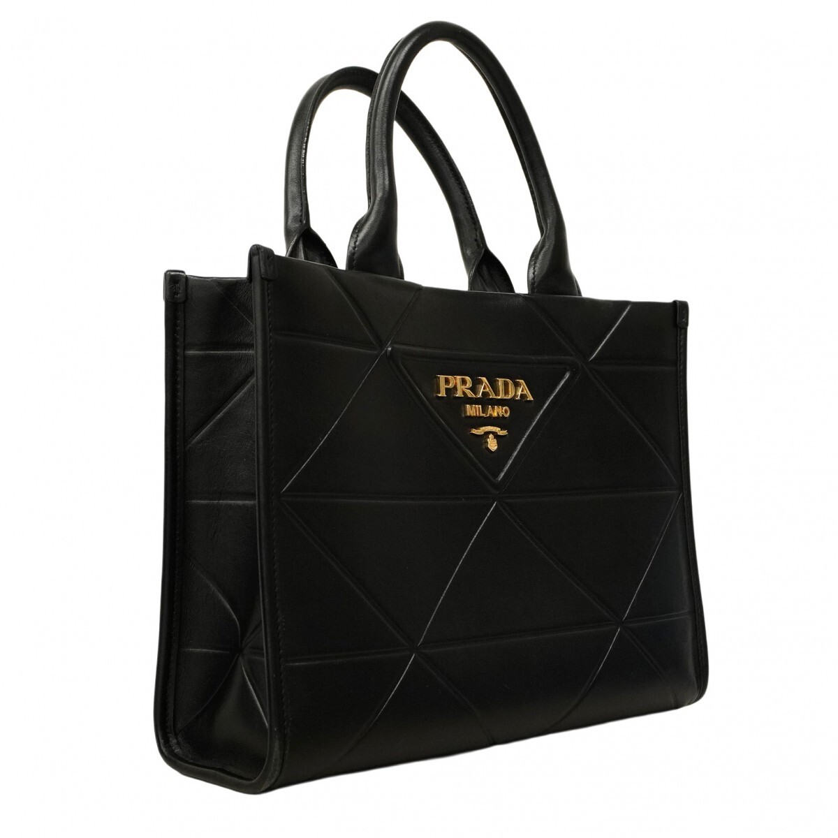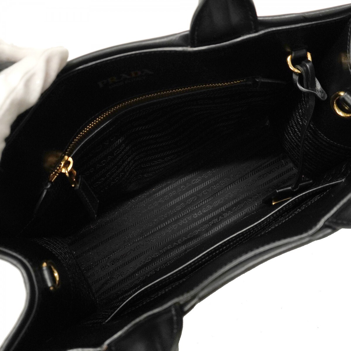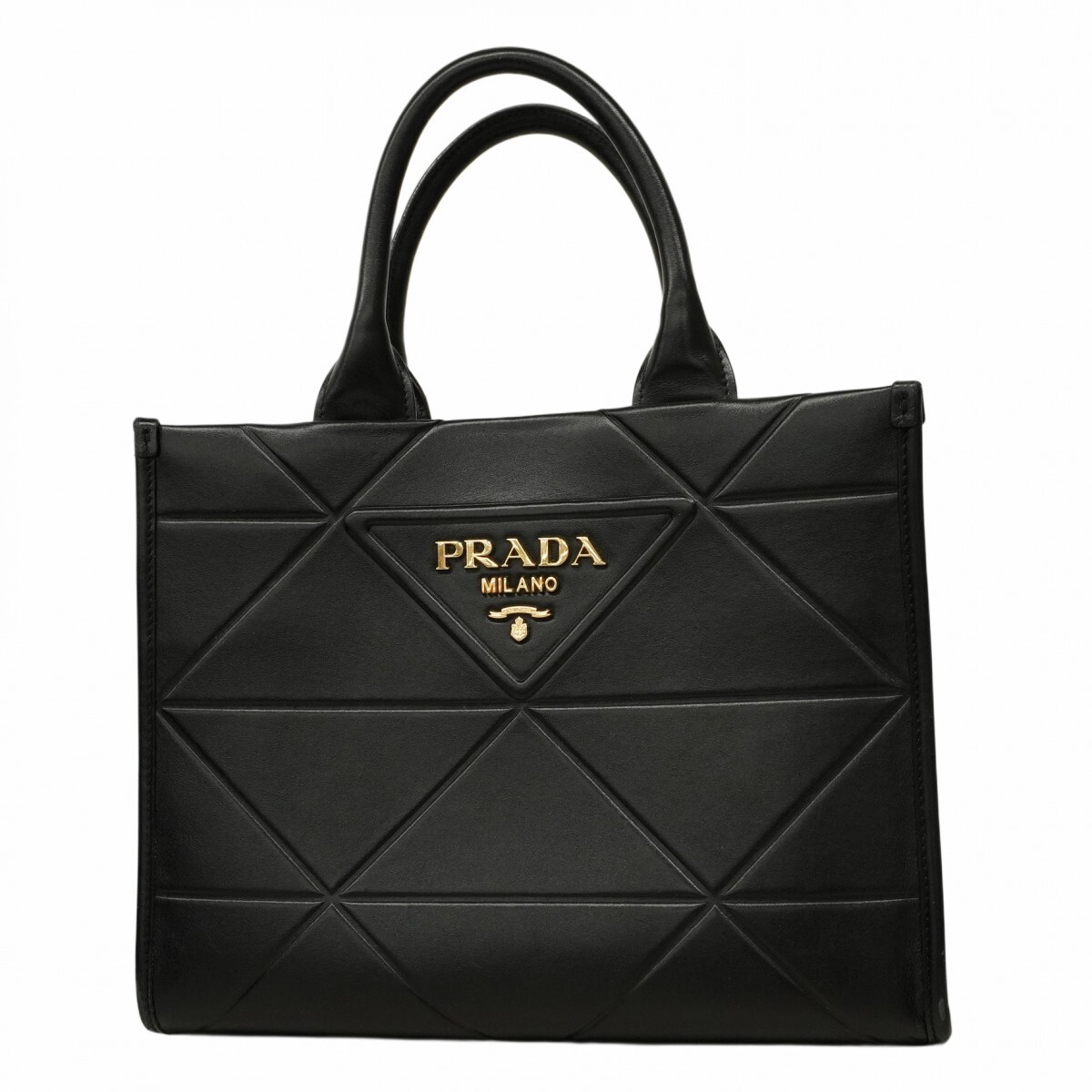 【5oc1804-h】プラダ トートバッグ シンボルトップステッチ レザー ブラック ゴールド金具【中古】レディース