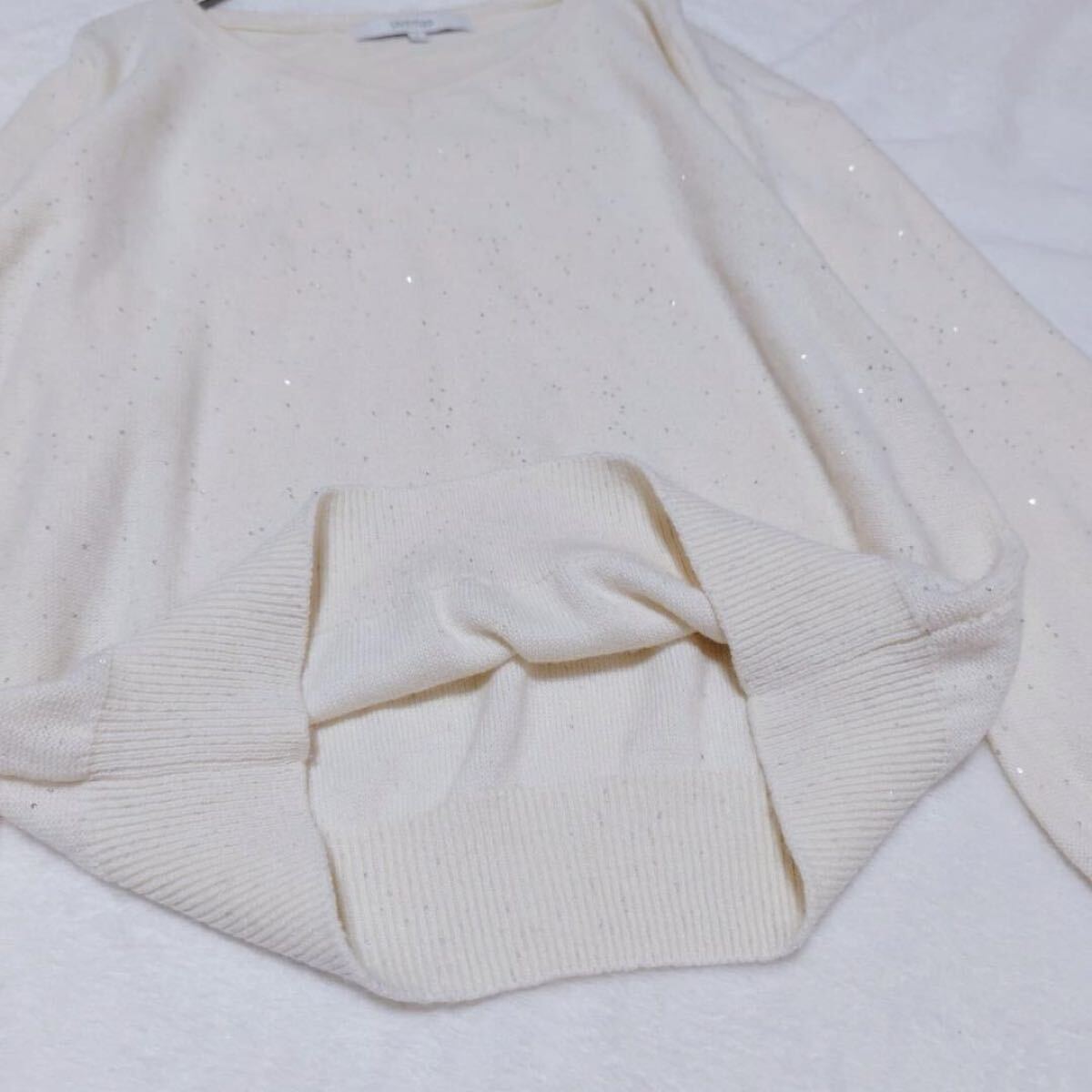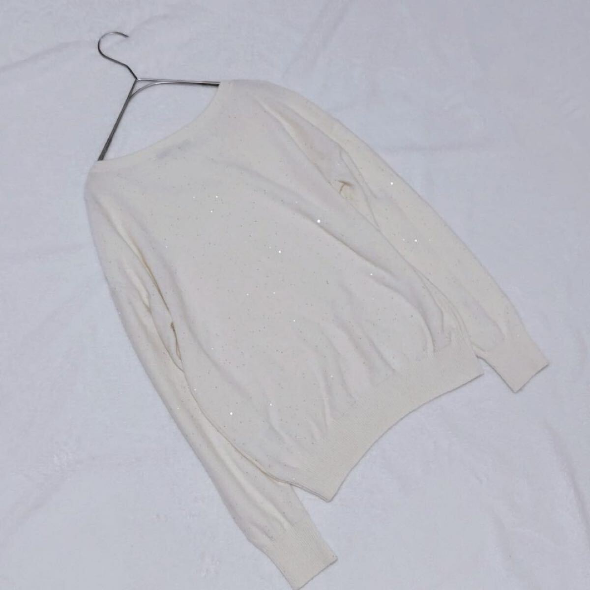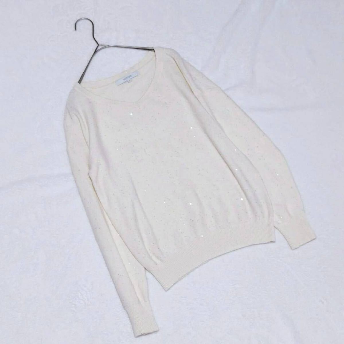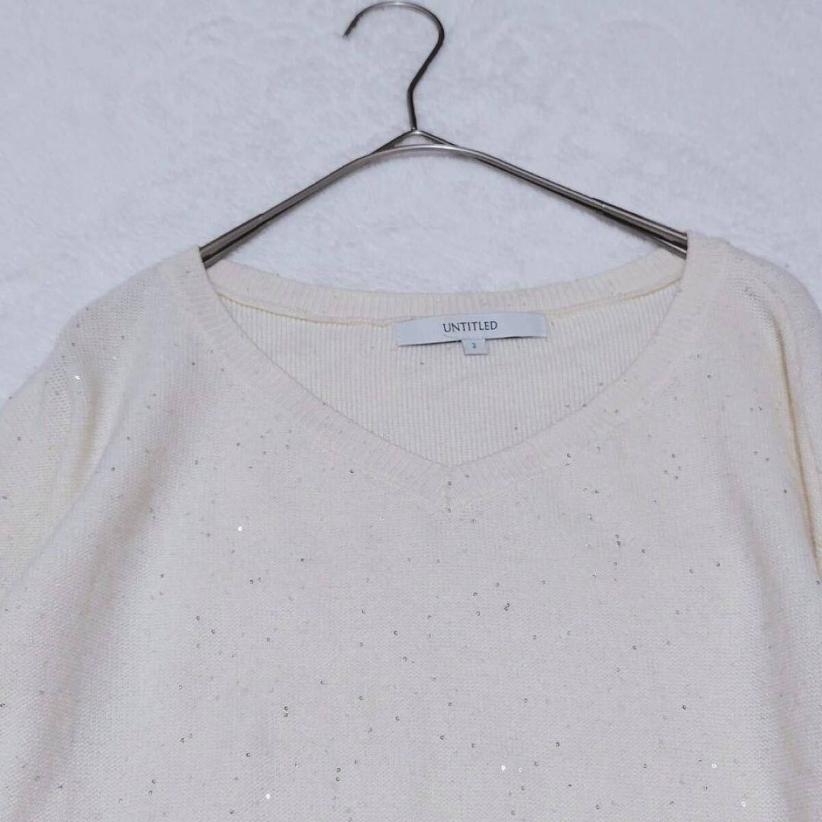KN0266【アンタイトル】ニット【2】ラメ Vネックオフホワイト クルーネック