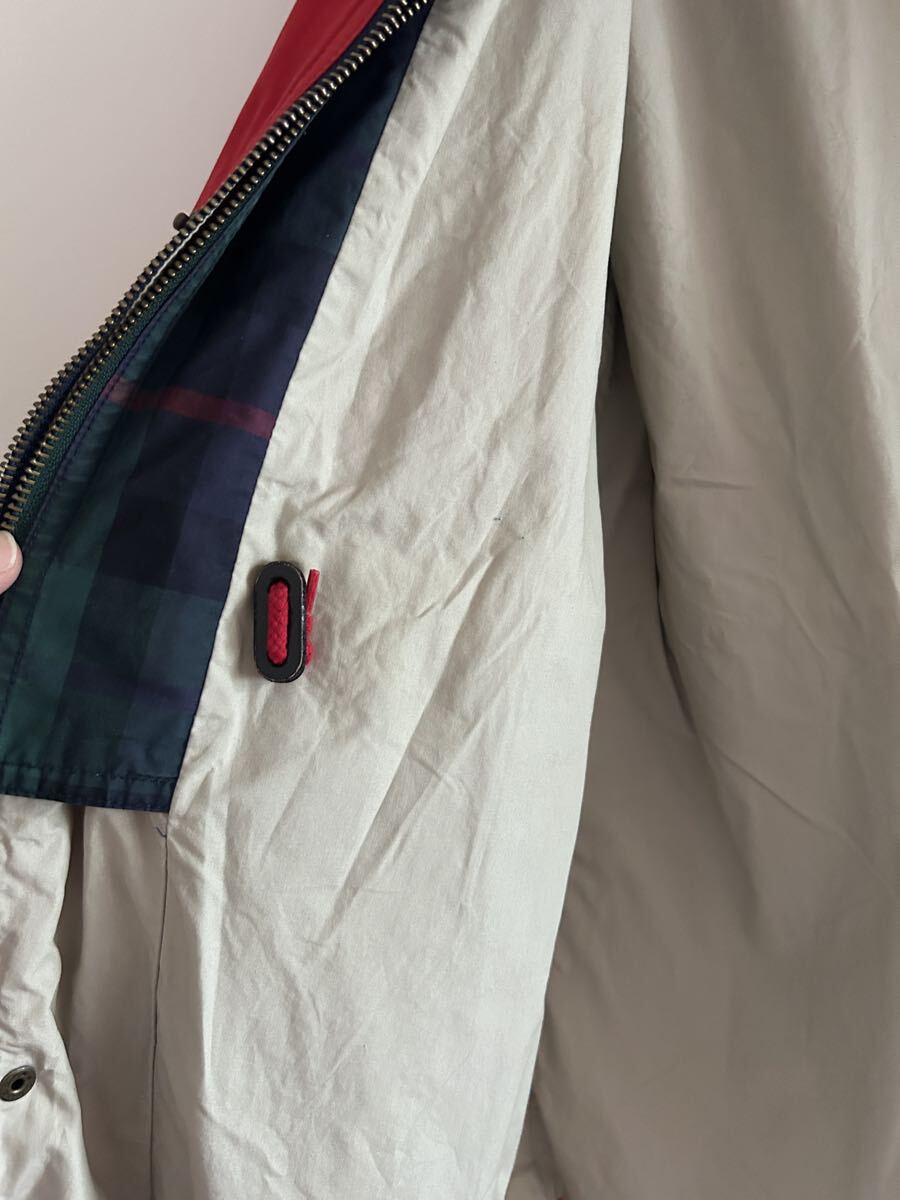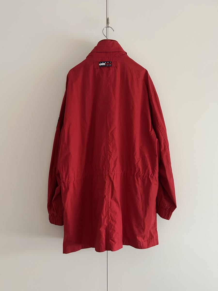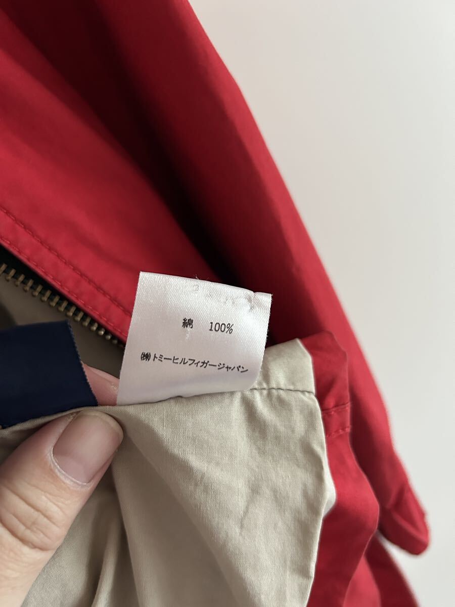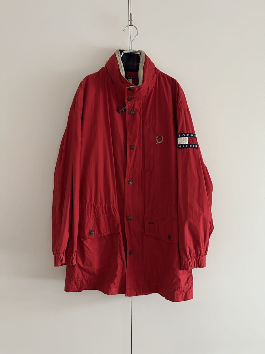 90年代トミーヒルフィガーを象徴する、存在感たっぷりのフィールドジャケット。鮮やかなレッドのコットンシェルに、袖のフラッグワッペン、ネイビー×グリーン系のチェック柄インナーフラップなど、当時らしいトミーの魅力が詰まった一着です。ゆったりとしたシルエットで重ね着しやすく、タフな素材感も魅力。薄い汚れや使用感が入り、古着らしいリアルな風合いが楽しめる名作ジャケットです。