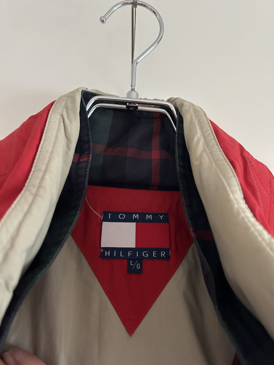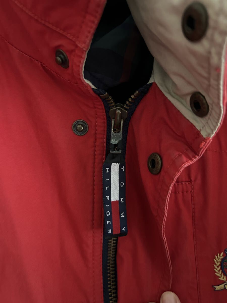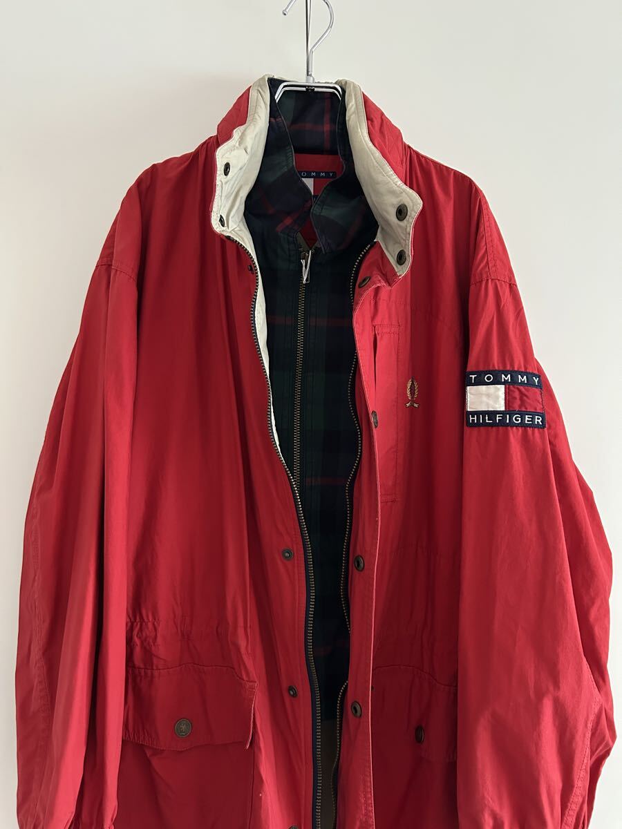 Classic 90s Tommy Hilfiger cotton field jacket featuring a plaid inner storm flap and signature flag patch.