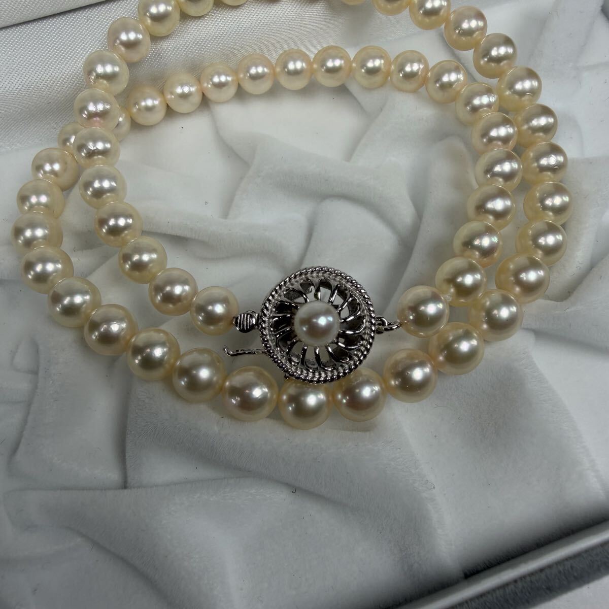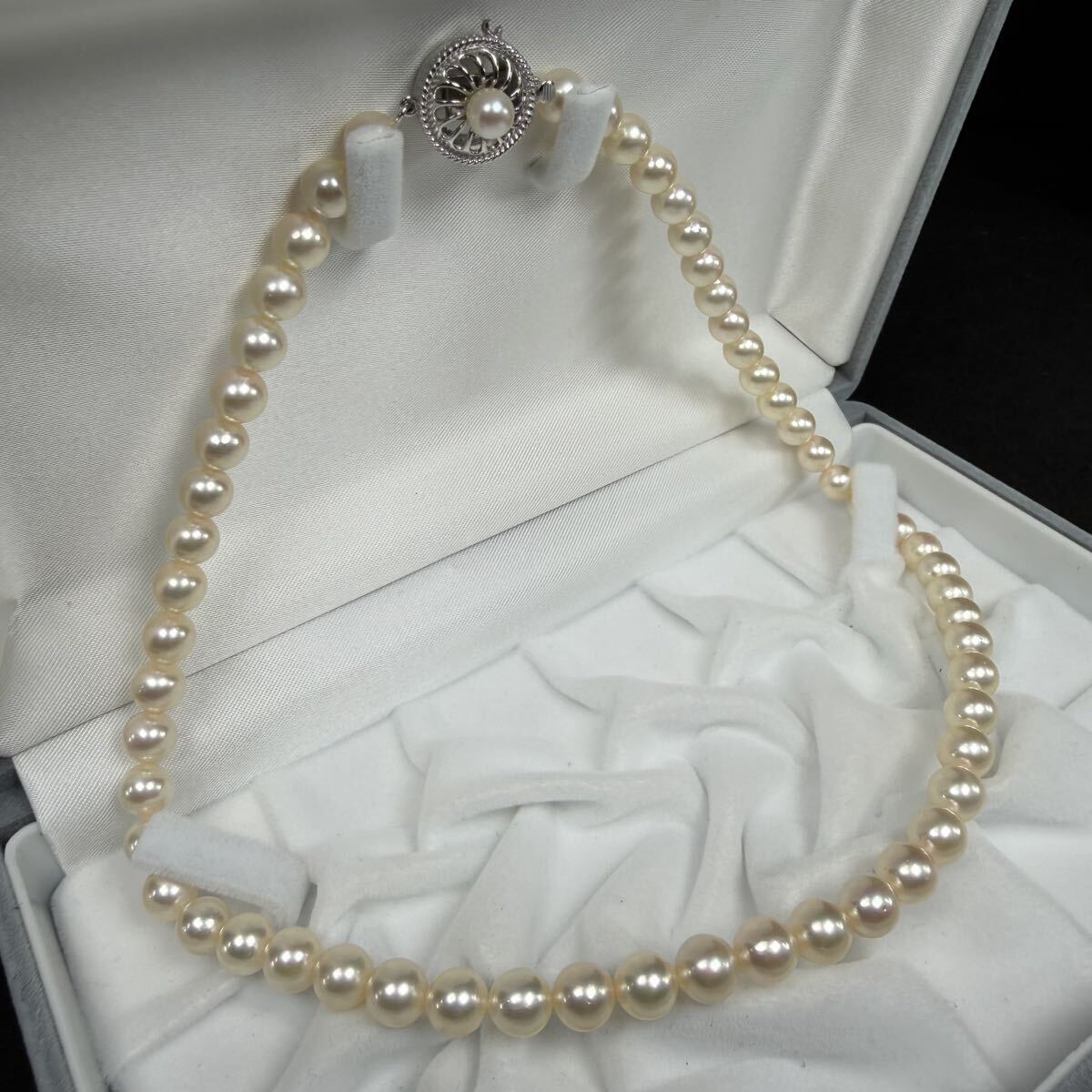てり最強 アコヤ真珠 あこや パール 約6.7-7.1mm 全長43cm ネックレス ラウンド SV金具 ジュエリー 美品 Pearl necklace jewelry lumi-0204