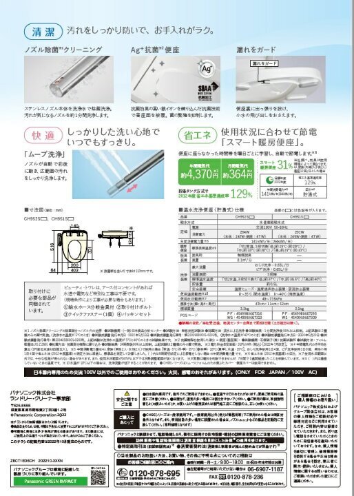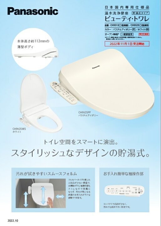 【新品未開封品・メーカー保証付】●Panasonic/パナソニック 温水洗浄便座(貯湯式) ビューティ・トワレ CH951SPF [パステルアイボリー]●