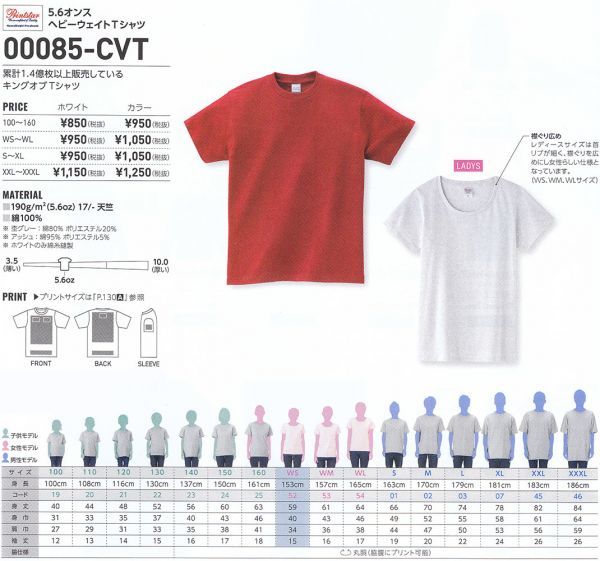 5.6ozと中厚生地となりますので、1枚で着ても良し、インナーも良しの万能Tシャツとなります。
