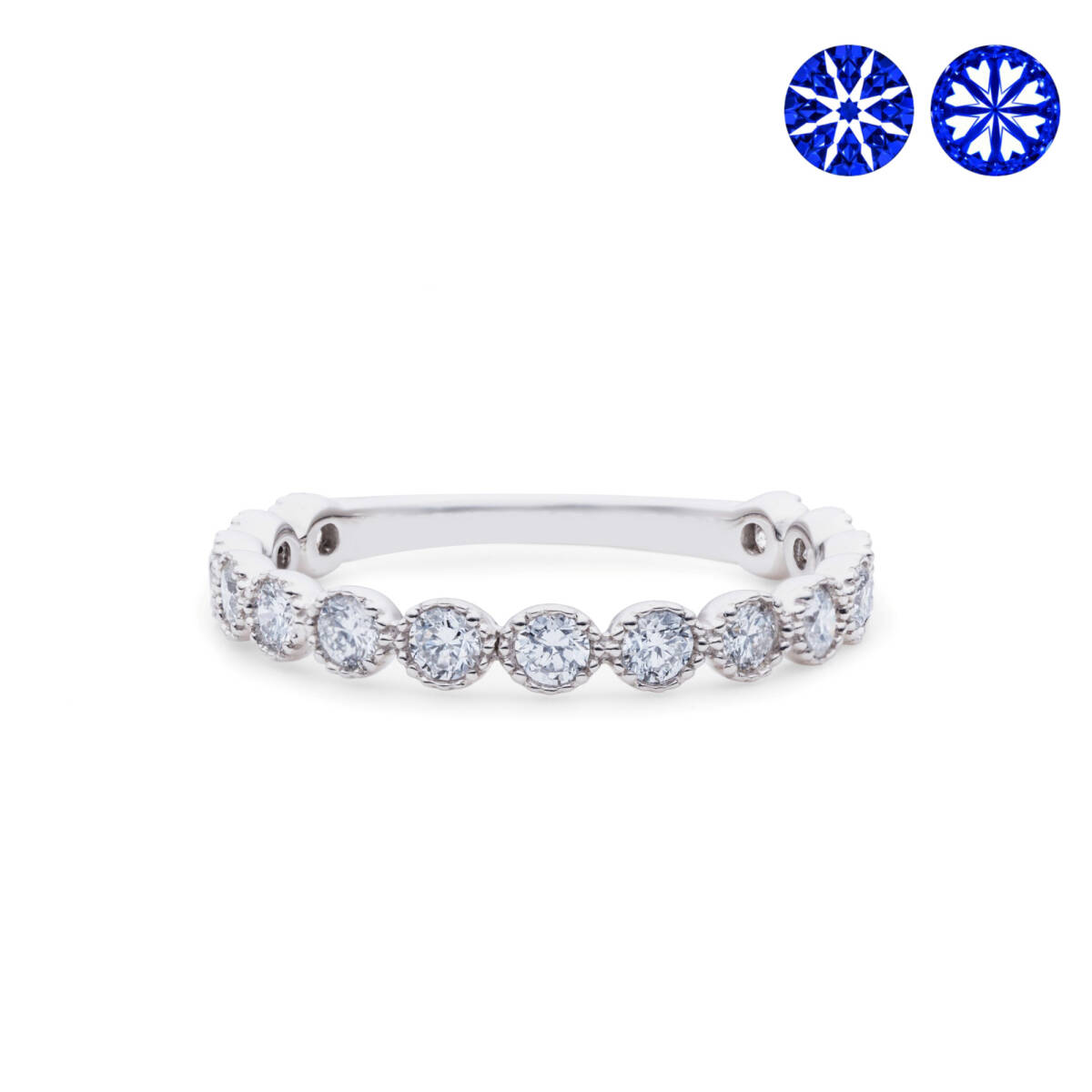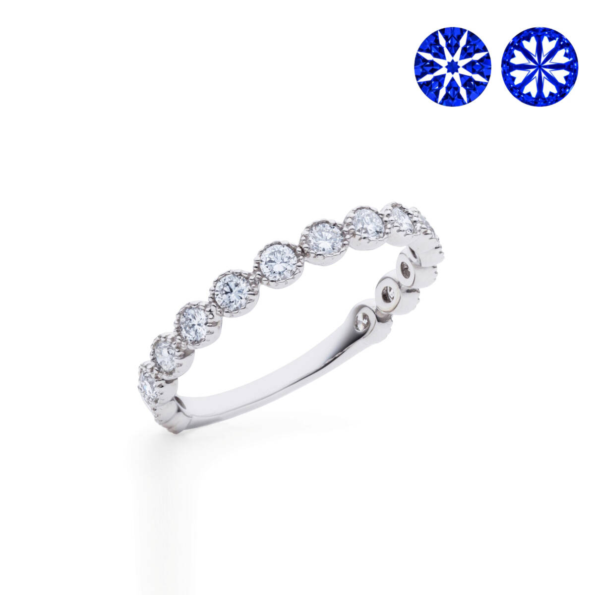 優れたカットが施されたラウンドブリリアントカットのダイヤモンドのみに出現する極限シンメトリー最高品質カットの証でございます。