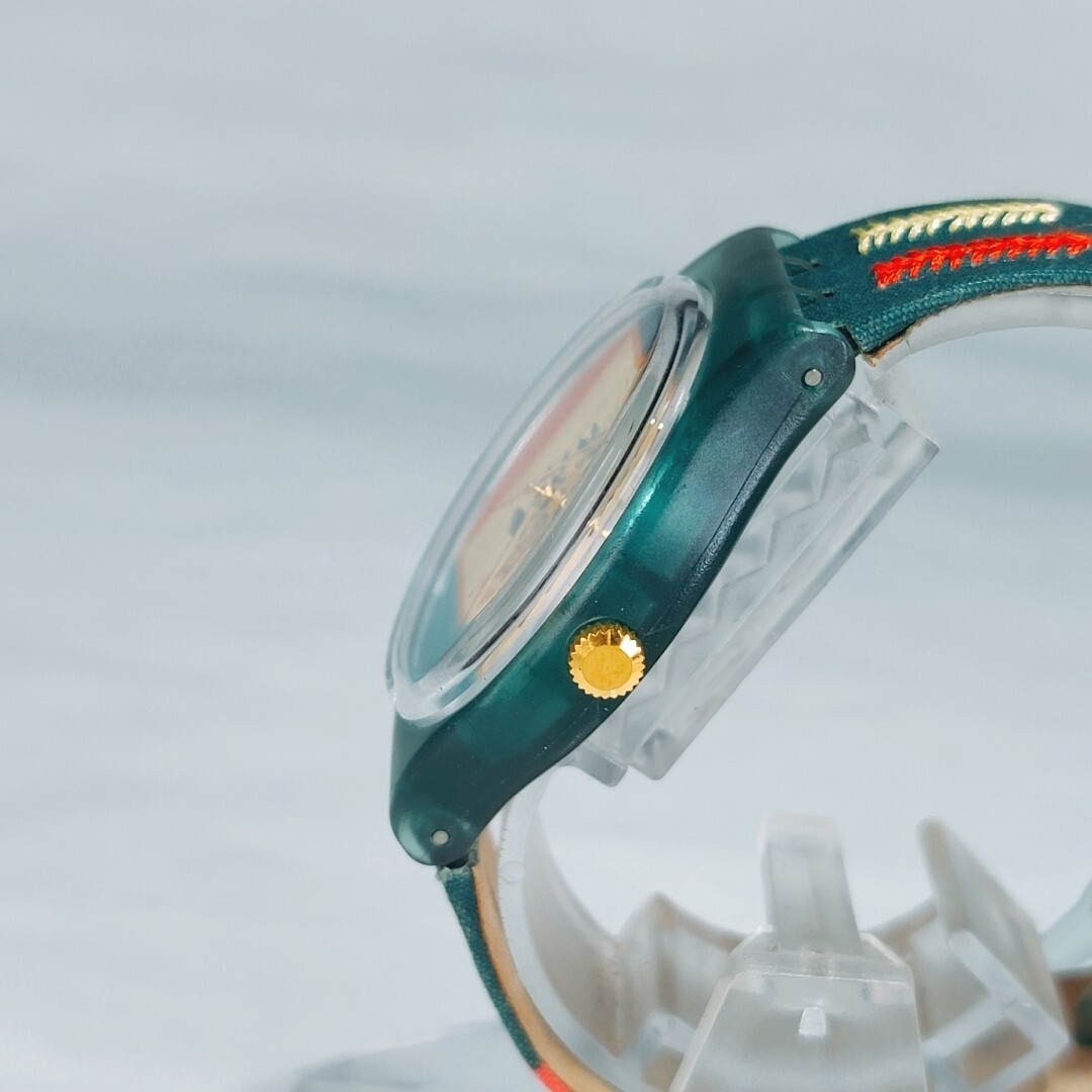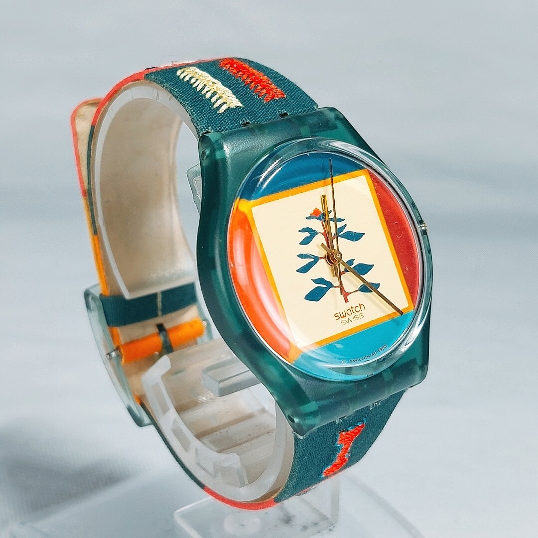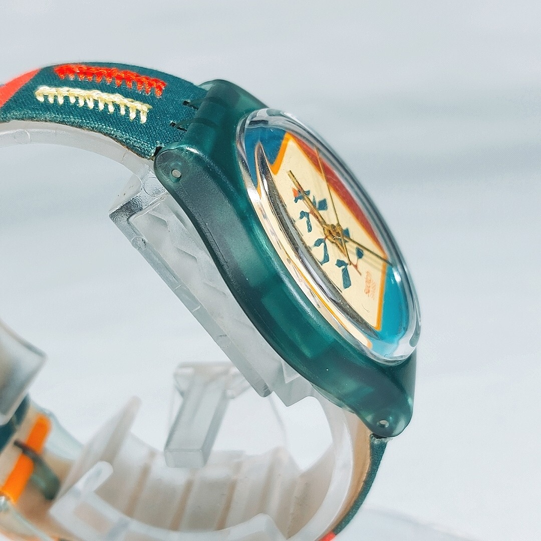 美品 Swatch スウォッチ Gent ゲント GM122 Poncho アナログ クォーツ 腕時計 カラフル イラスト文字盤 ラバーベルト 新品電池交換済み