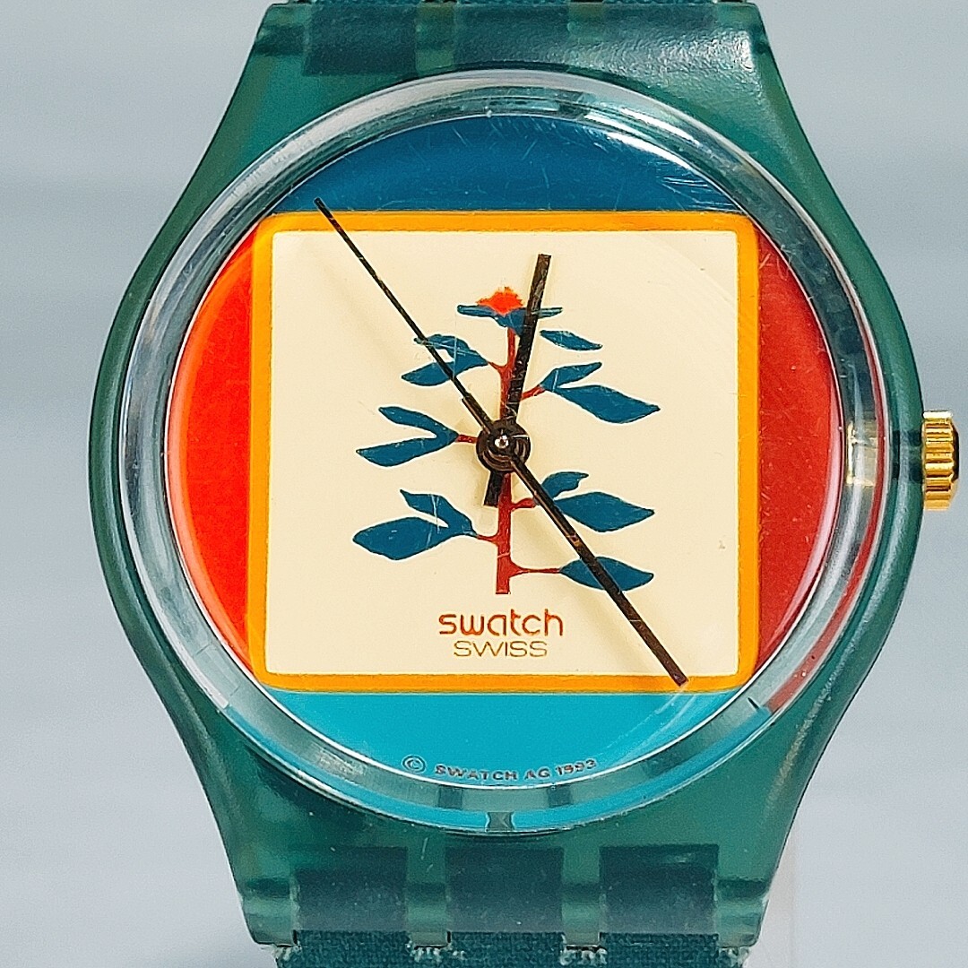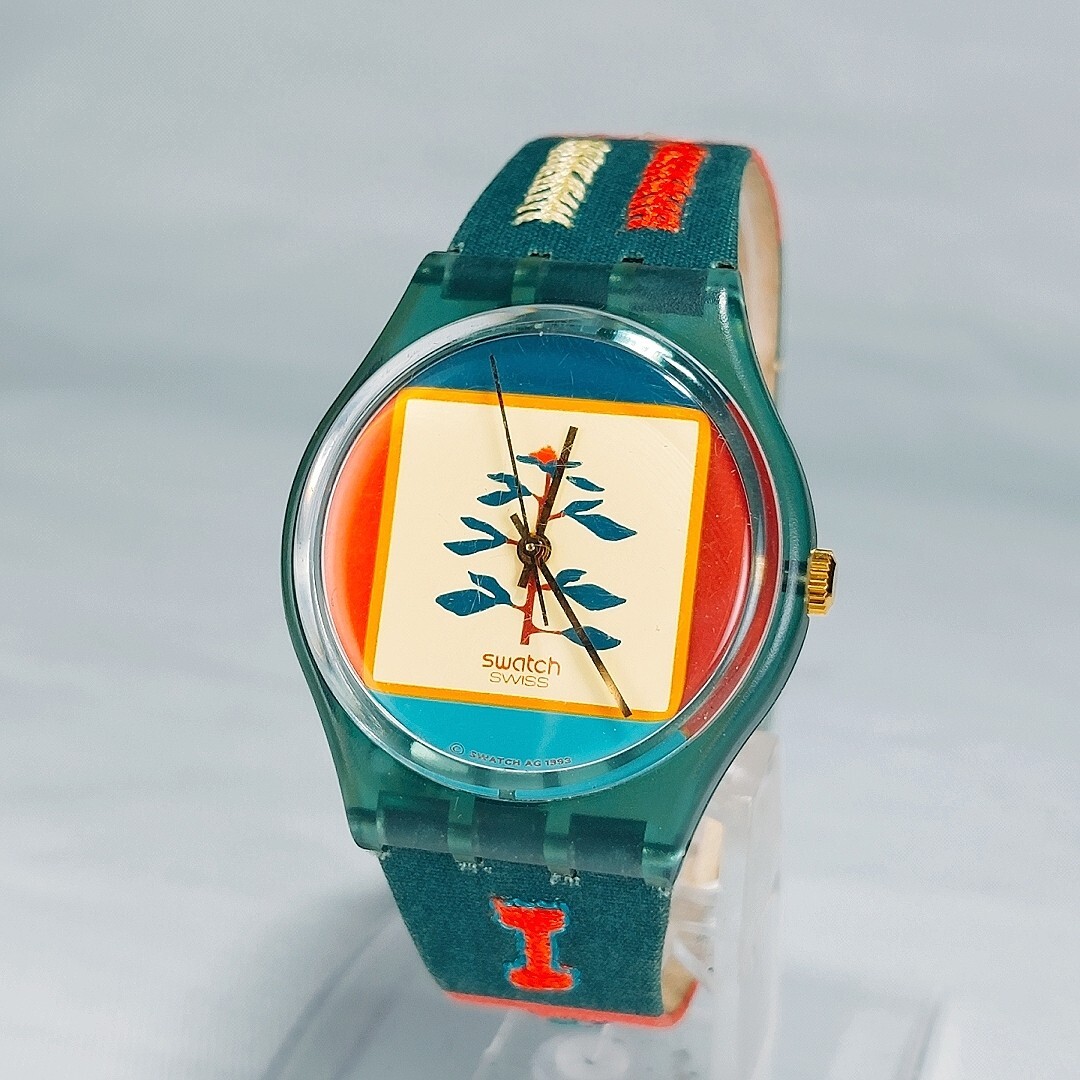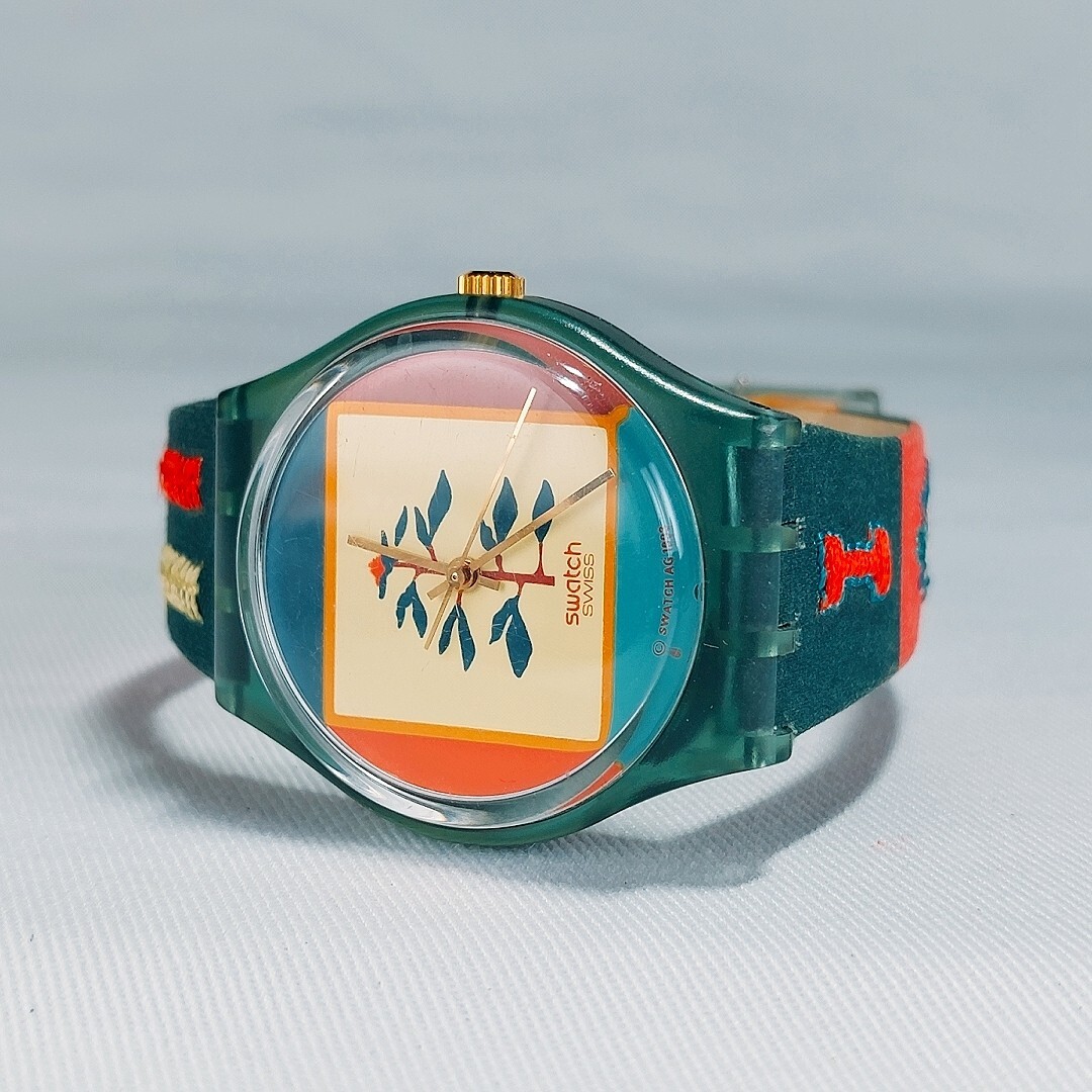 美品 Swatch スウォッチ Gent ゲント GM122 Poncho アナログ クォーツ 腕時計 カラフル イラスト文字盤 ラバーベルト 新品電池交換済み