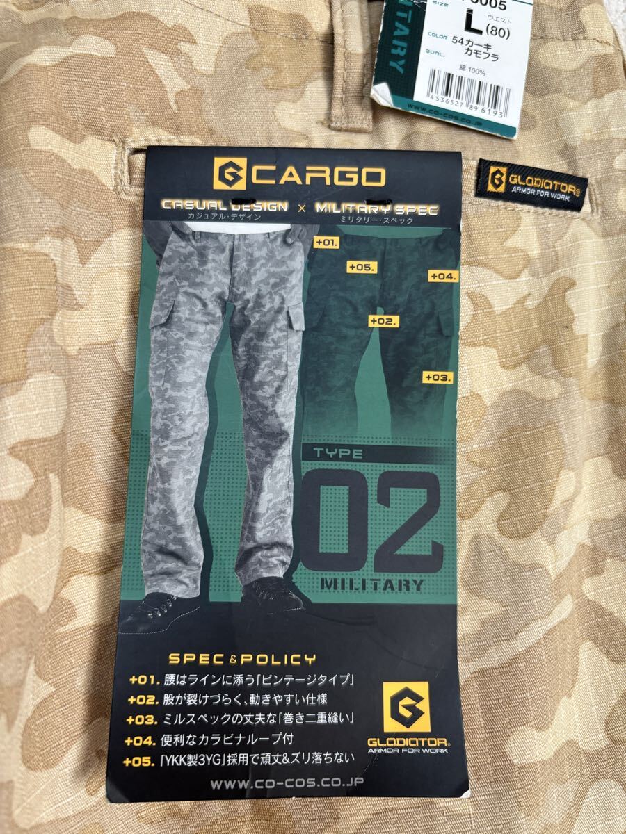 ★送料無料★ 新品 GLADIATOR ミリタリーカーゴパンツ 迷彩 グラディエーター カーゴパンツ カモフラ L(W80)です。