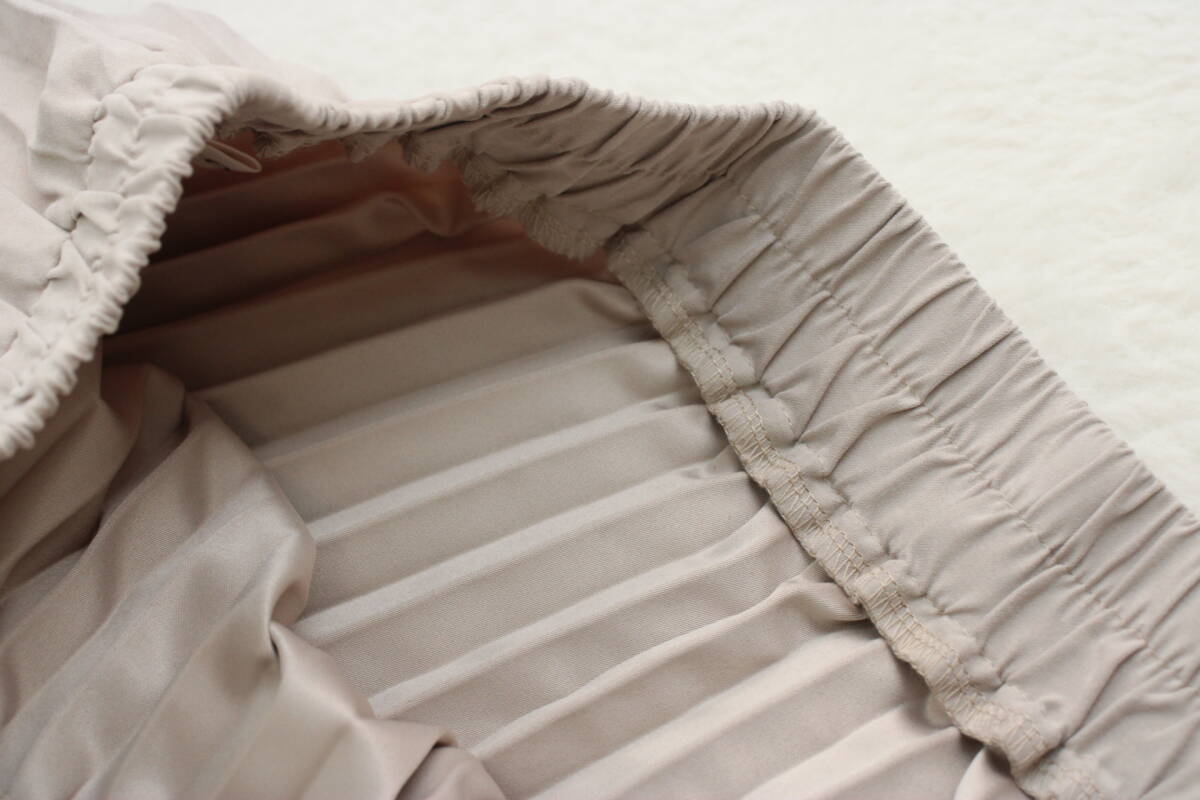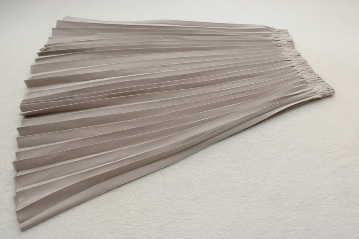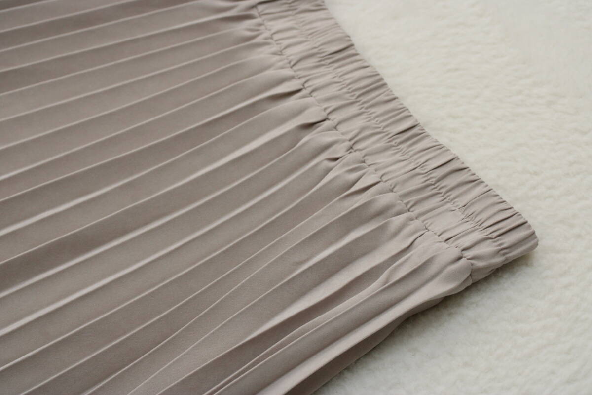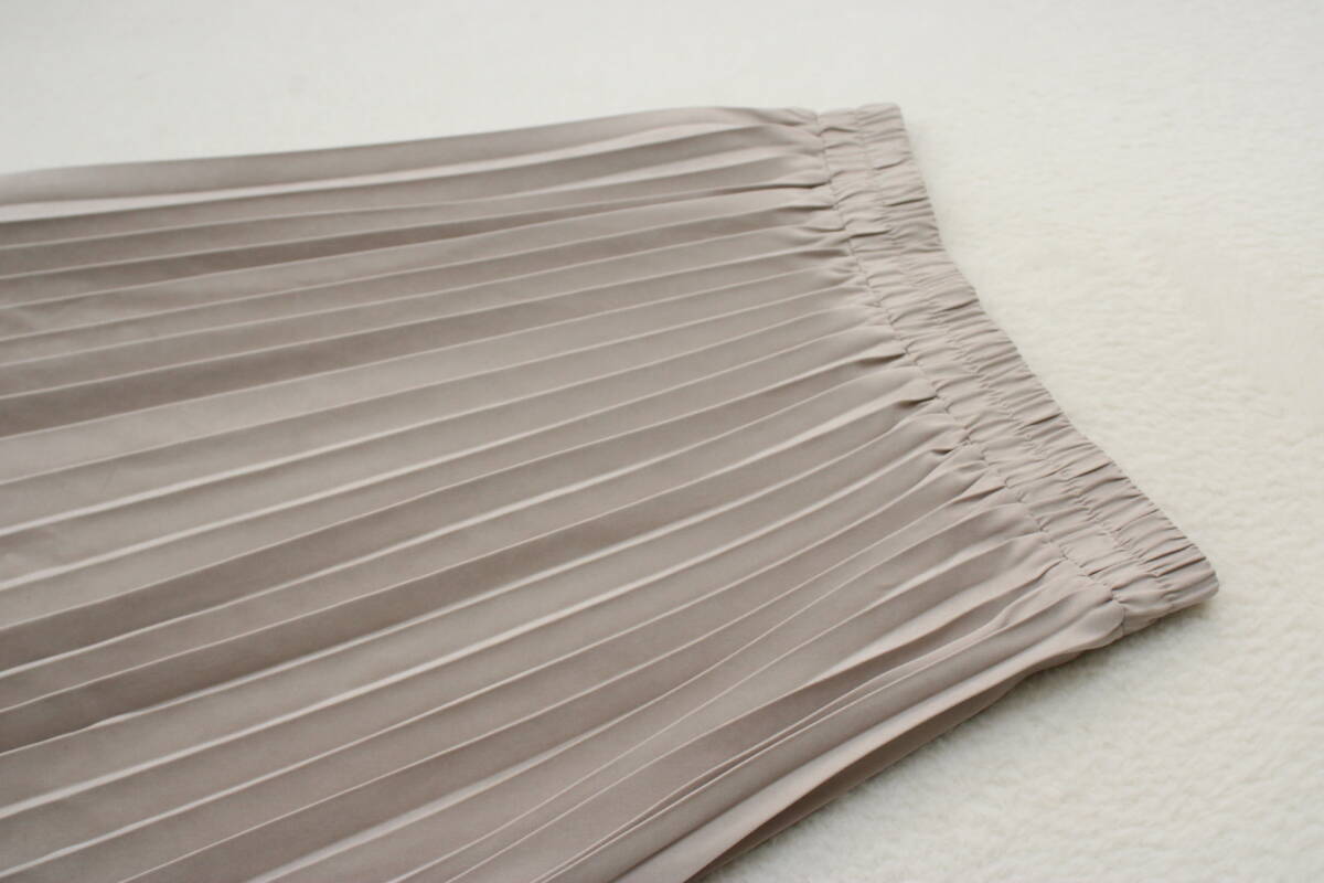 6637 新品 ウエストゴムピーチスキンプリーツスカート ベージュFサイズ
