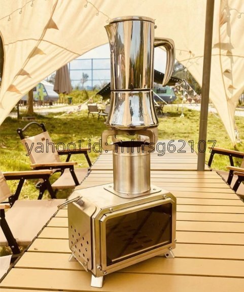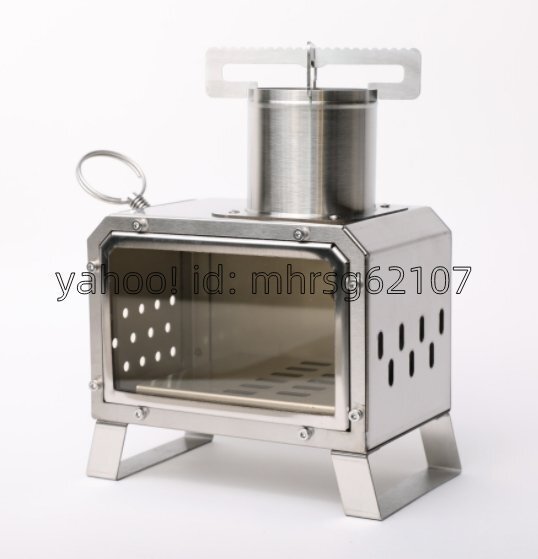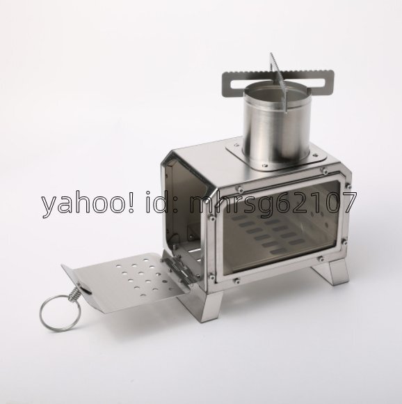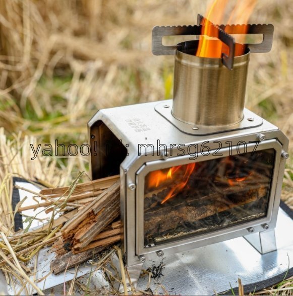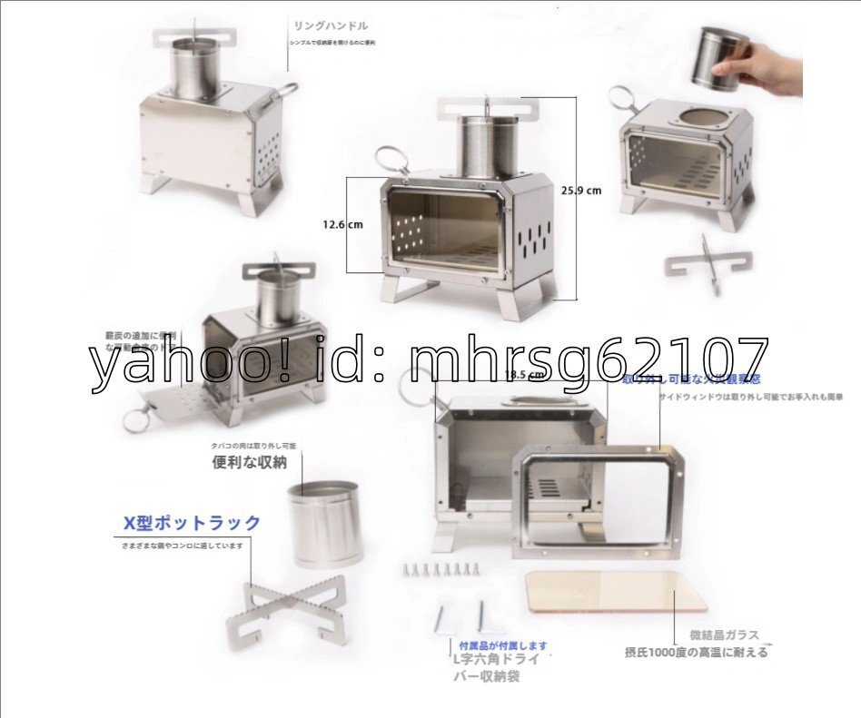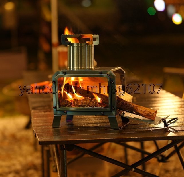 アウトドア用ステンレス製ポータブル卓上野営薪火炉観火窓付き暖房炉薪火炉