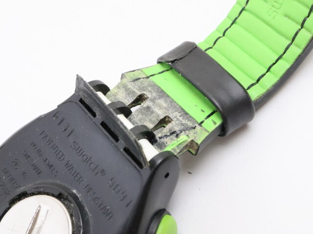 | 商品説明 | 当商品をご覧いただきありがとうございます。 スウォッチのクオーツ式腕時計になります。 デジタル表示のお品になります。 純正のベルトになります。 電池交換済ですので末永くお使いいただけます。 サイズ | ケース径 よこ(リューズ含まず) 約45mm | 厚み 約14mm ベルトの長さ・最大 約22cm 状態 | 動作品になります。 | 使用に伴う小傷があり、ベルトに破損があります。 風防、背面、裏蓋にスレがあり、風防内側に黒くなっている部分があります。(画像あり) 状態は画像を参考にお願いします。 付属品 | 本体 説明書兼保証書 箱 | |