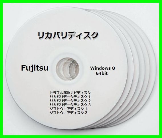 | ■商品説明■ 品名:AH42/J 型名:FMVA42JB FMVA42JW FMVA42JR (Windows 8 64ビット版) ※品名・型名は本体の側面や底面に貼ってあるシールに記載されています。 セット内容(DVD 6枚セット) ・トラブル解決ナビディスク ・リカバリデータディスク 1 ・リカバリデータディスク 2 ・リカバリデータディスク 3 ・ソフトウェアディスク 1 ・ソフトウェアディスク 2 【この様な場合に富士通出荷時に復元が出来ます】 *SSD、HDDを交換した場合。 *Windows 10 , 11等にアップグレードをしたが出荷時のOSに戻したい。 *パソコンのOSが起動できなくなった時。 *PCの動きが遅く、フリーズも起こす。 *ウイルスに感染してしまった。 *PCを処分するため今までのデータを完全に消去する。