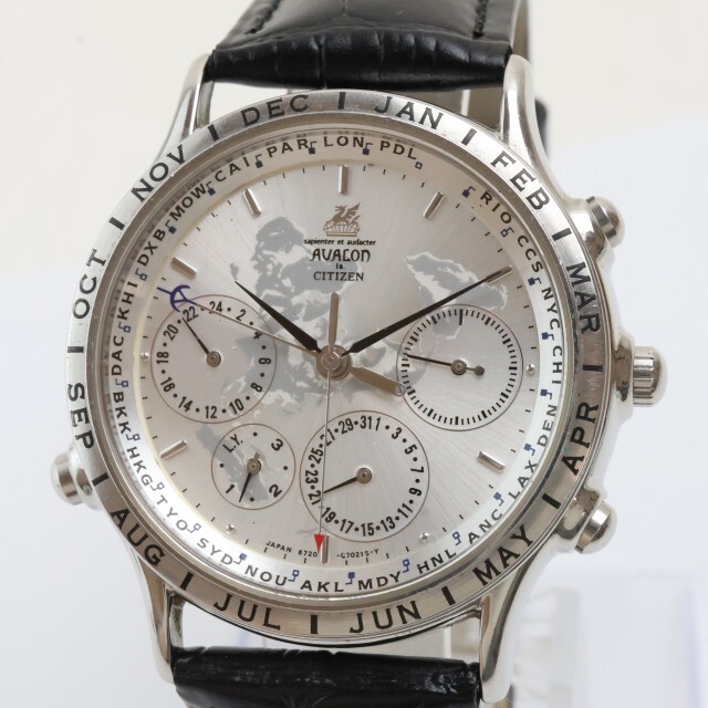 | 2511-557 QZ シチズン アバロン 6720-G70188 クオーツ 腕時計 CITIZEN 日付 銀色ケース ワールドタイム | |||||||