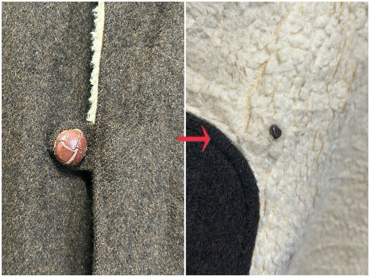 上から2つ目の胡桃ボタンだけ埋め込みタイプになります。