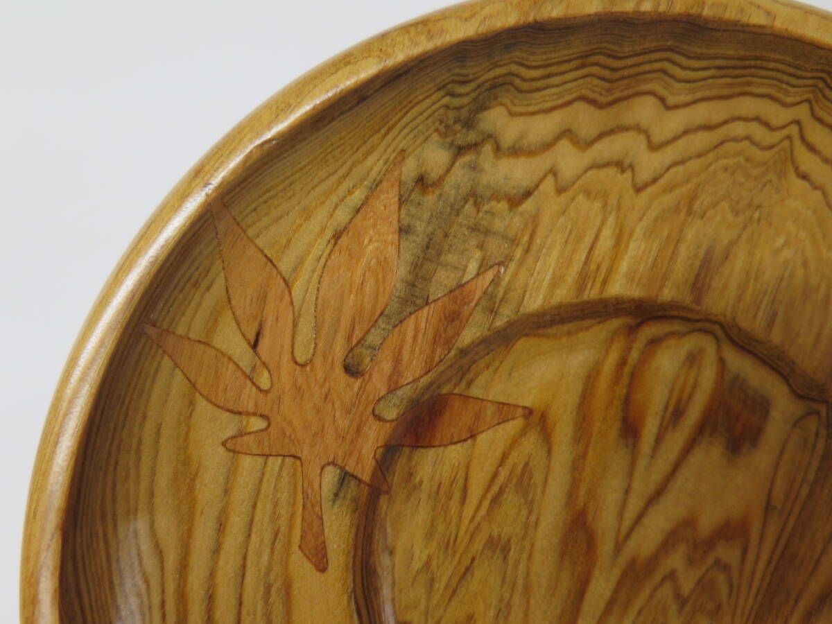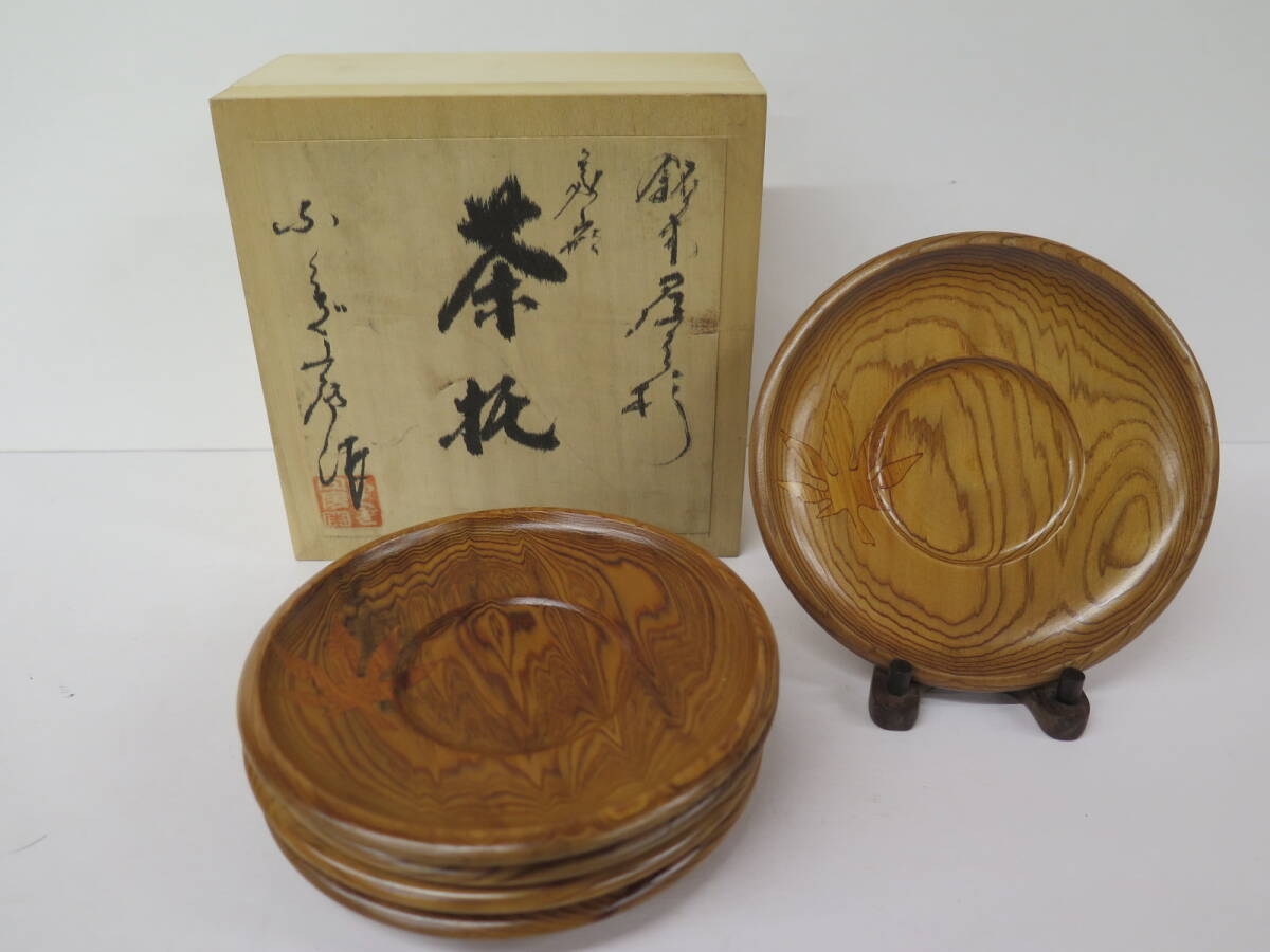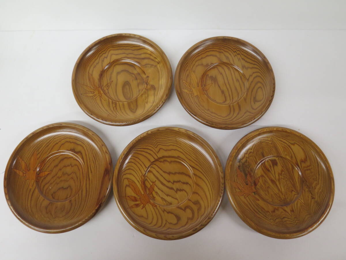 銘木 屋久杉 象嵌紅葉 茶托5枚組 ふくぎ工房作 共箱