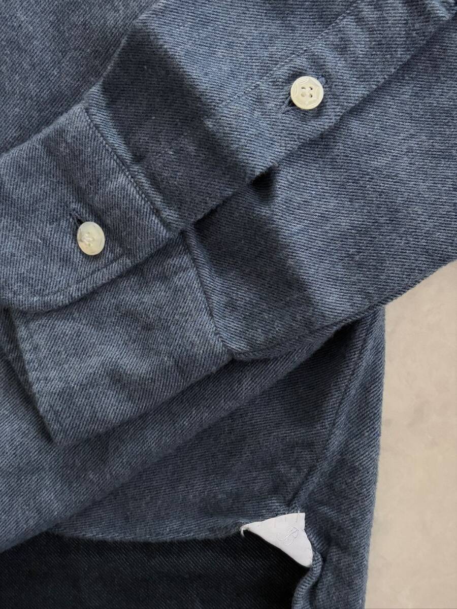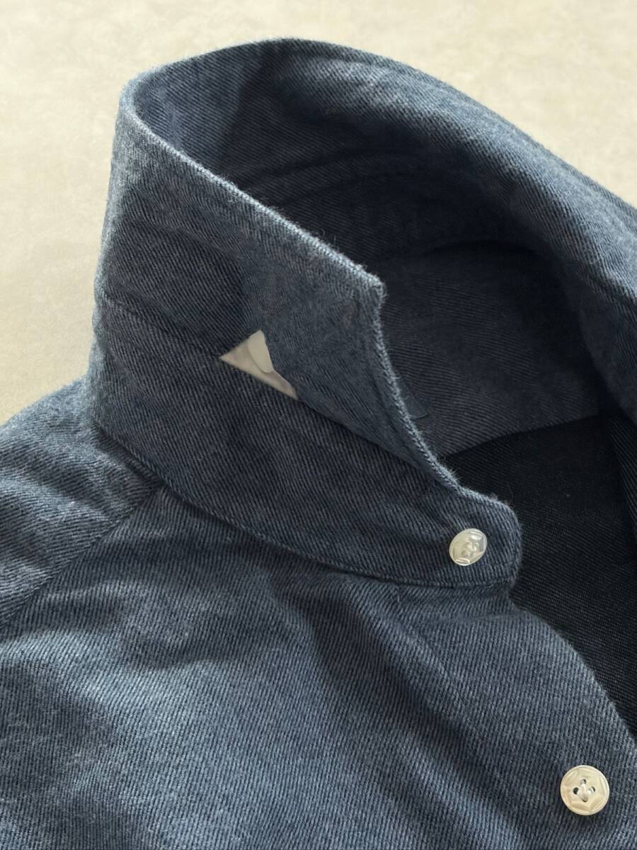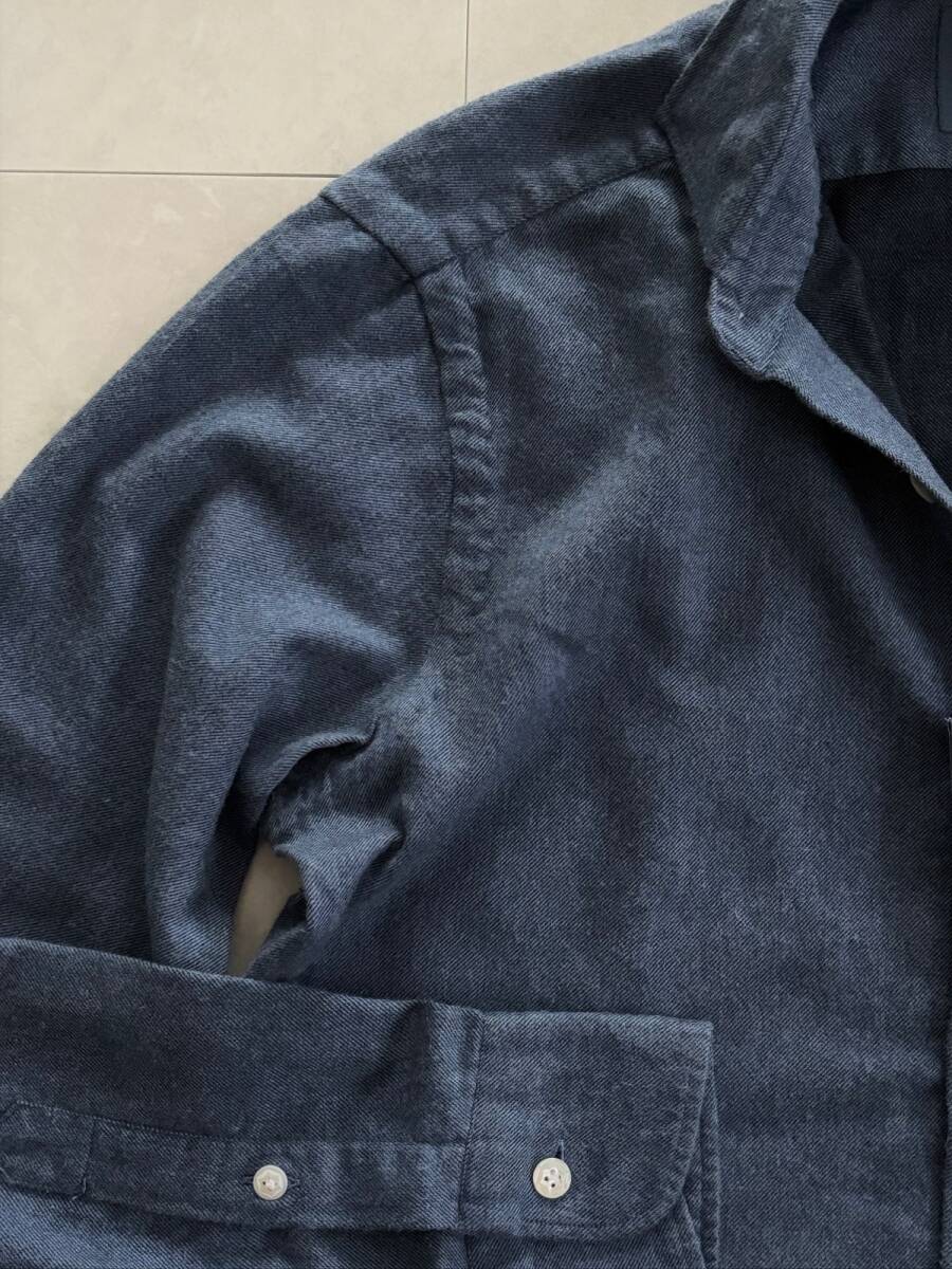 <ブランド紹介> BARBA(バルバ)は1964年、ナポリで誕生したシャツ専業ブランドで、現在ではクラシックテーラーリングの文脈を踏まえた“ナポリ仕立ての正統派”として世界的に評価されています。最大の特徴は、細部に宿る手仕事と、ナポリ特有の軽さを生む立体的パターン。肩のいせ込みや袖付けの角度、芯地の柔らかい据え方など、身体の動きに追随する構造が、見た目以上の快適性をもたらします。中でも“DANDYLIFE”ラインは、バルバの中でも最もドレス寄りの位置づけで、細かな運針・薄手芯地・立体的襟型といった職人的ディテールを強調したブランドの真髄ともいうべきコレクションです。 <商品説明> 本作は、DANDYLIFEならではのエレガンスを、厚手フランネルの季節感とともに味わえる一着。 使用されるフランネルは高番手コットンを微起毛させたもので、一般的なネル素材とは異なり、表面の毛羽が均質で光沢を帯びる“ナポリらしい上品さ”が特徴です。厚みのある生地ながら、肩周りの手仕事によるいせ込みが腕の可動域を確保し、袖付けの前振り設定がジャケットとの相性を高めています。 DANDYLIFE特有の背ダーツは、スタイルを向上させ、姿勢すらよく見せる魔力があります。 美しいロールが出る構造で、タイドアップ時には貫禄のある表情を演出。 カジュアルなフランネル素材でありながら、ドレスシャツの構築美をしっかり残した、完成度の高いモデルです。 ブランド:BARBA DANDY LIFE / バルバ ダンディライフ 素材:コットン100% サイズ:41 着丈:73cm 袖丈:64cm 肩幅:46cm 身幅:55cm ※実寸値となりますが誤差はご了承ください。 ※迅速なお取引を心がけさせていただいております。オークション終了より24時間以内にご連絡をいただけない場合、土日祝日を除き48時間以内にお支払い手続きをいただけない場合は、お取引の意思なしと判断させていただき取引キャンセルとさせていただきます。 万が一上記が不可の場合は事前にご連絡いただくか、入札をお控えいただきますようお願い申し上げます。 ※なるべく現物に近いお色味で撮影するよう心掛けておりますが、閲覧環境の違い等によって違いが出る場合があります。 差し替えトラブルを避ける意味でも上述した旨含め、イメージと違う等での返品は受け付けておりません。 百貨店並みのサービスを求める方や神経質な方の入札はお控えいただきますようお願い申し上げます。 また、差替えやSNS使用後の返品等を防止するためためにも、原則返品には応じられません。 疑問点や心配事等がある場合は入札前に質問欄にてお問い合わせください。 ※当方が出品するすべての商品は間違いなく本物ブランド品となりますので、安心してオークションにご参加ください。 万が一、第三者等により偽物と判断された場合、商品の返品、お支払いただきました全額を返金をいたします。 |