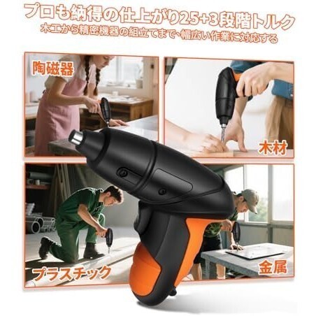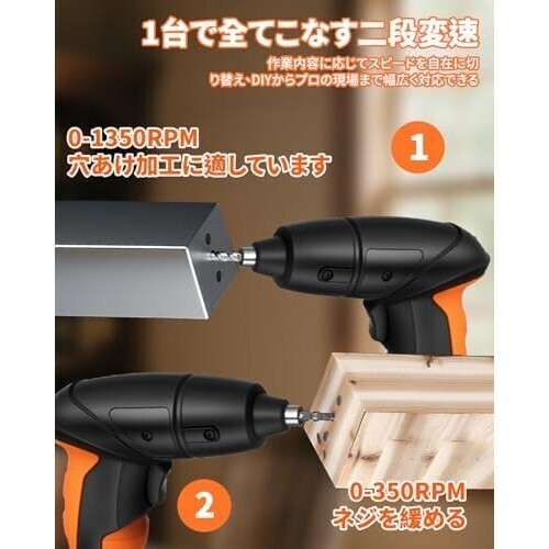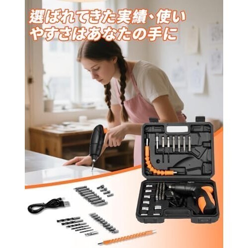 【2025新登場・高トルク・業界最強】Zyrin 電動ドライバー 正逆転切替 電動ドリル 強磁気 4.2V 最大トルク35N.m ドリル ドライバー USB充電式 小型 軽量 手持ち 収納ケース付 コードレス 穴あけ 家庭用・家具組立に最適 45個部品付き 日本語説明書付(ブラック)
