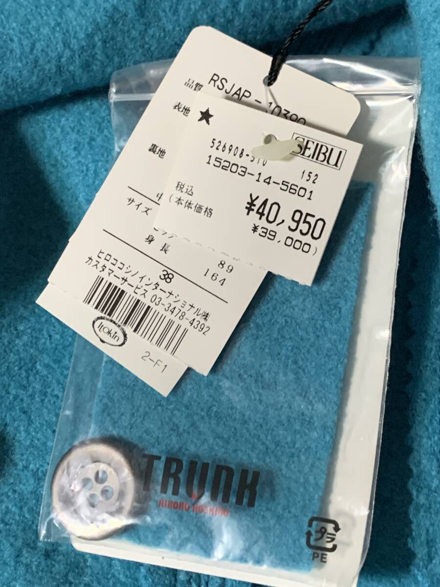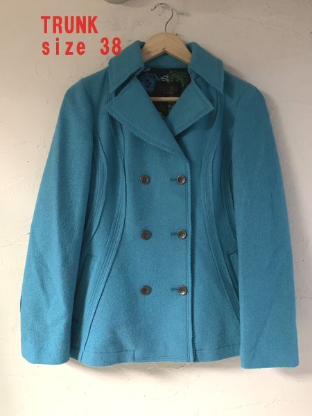◆N14◆TRUNK トランク ピーコート テーラードジャケット ダブル ブルー 毛混素材 サイズ38 参考価格40950円