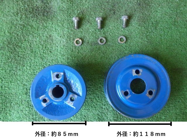 | Bベルト Vプーリー スチール製 径:約118mm 軸径:約18mm 幅:約22mm キー溝:約5mm 径:約85mm 軸径:約18mm 幅:約45mm キー溝:約5mm 2本合わせると幅が約67mm 使用頻度の少ない商品です ボルト3本で組み合わせできます 適合機種に関しての質問には回答できません 他にも農機具の中古パーツの在庫がありますので問合せ下さい 中古パーツに関しての問い合わせは当ストアまで連絡願います 質問欄からの問合せには回答できない場合がありますので メールにてお問い合わせ下さい リサイクル あおや村 aoyamura@cy.tnc.ne.jp 営業時間(月曜日~土曜日 9:00~19:00) 当ストアでは、農機具・建設機械・スクーター・電動工具・電化製品・厨房機器等の販売・買取を随時行っております お持ち頂ければ無料にて見積り・買取・下取りをさせて頂きます 出張買取も応相談致します 無断で当商品をコピーして販売しているサイトがありますが当ストアはヤフー以外のサイトでの販売はしておりません!激安店・送料無料等となっている物は要注意です! | |