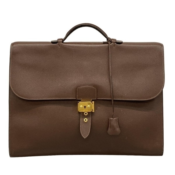 エルメス HERMES ビジネスバッグ サックアデペッシュ41 ダークブラウン ゴールド金具 □F バッグ