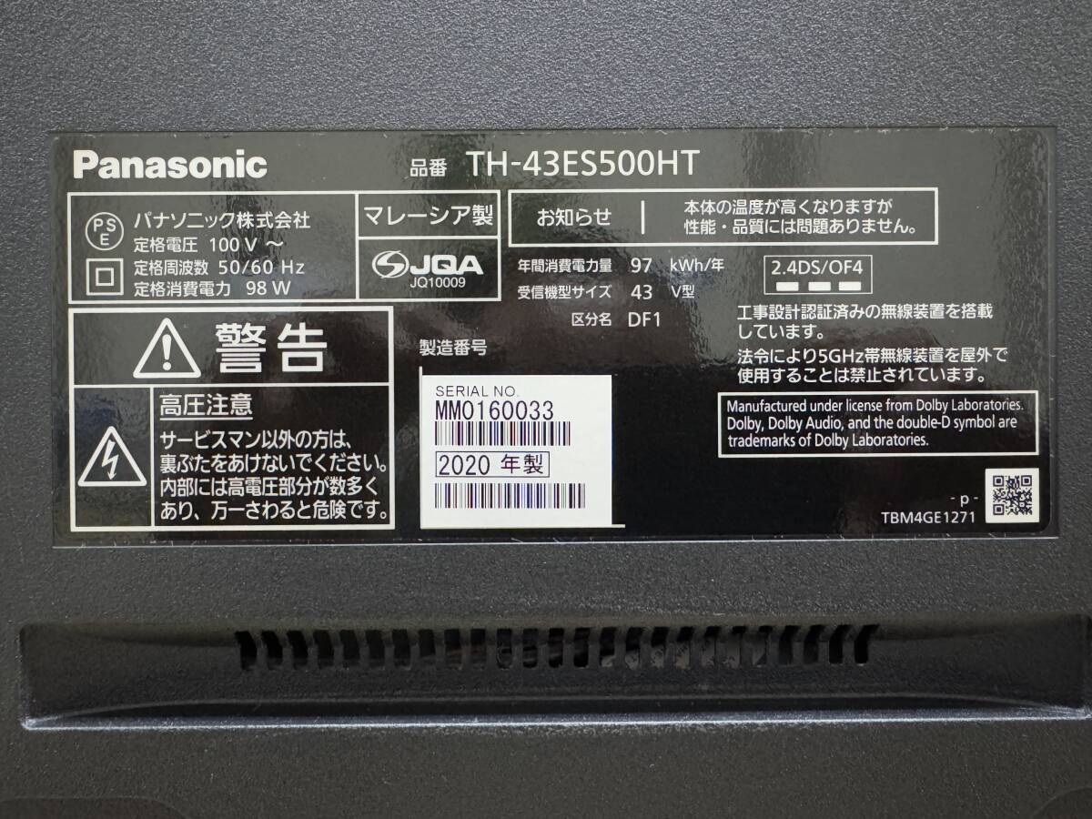 2020年製 Panasonic VIERA 43 TH-43ES500HT パナソニック 液晶テレビ 動画アプリ NETFLIX YouTube Amazon prime hulu DMM 管理F1880