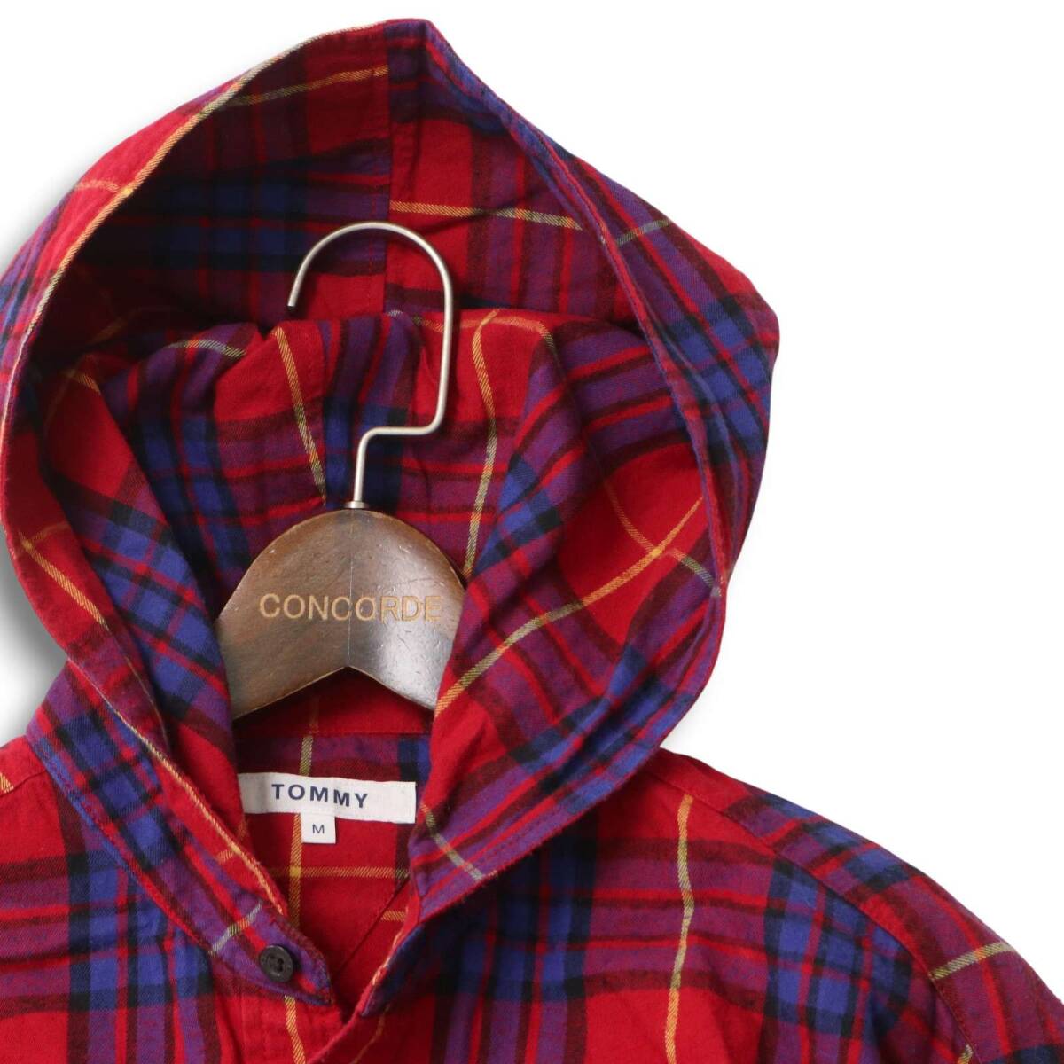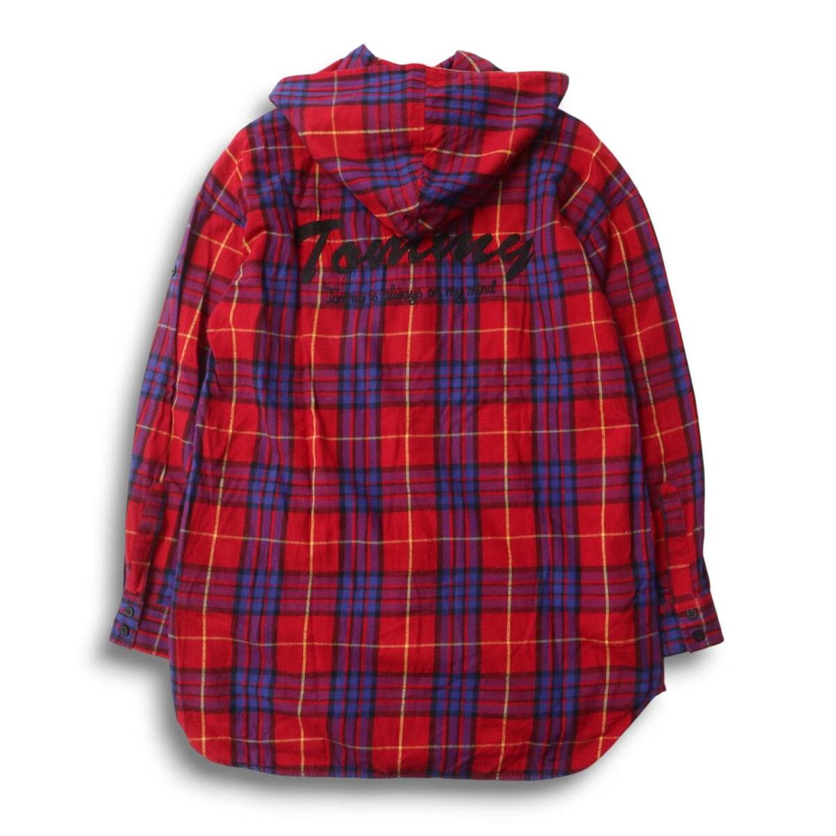 TOMMY トミー ヒルフィガー 秋冬 ロゴ刺繍★ 長袖 フーディー チェック ネル シャツ パーカー Sz.M メンズ