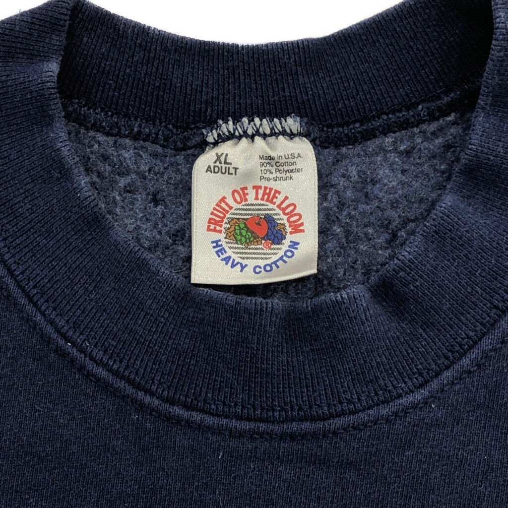 | 【商品管理番号】 T5422 【ブランド】 FRUIT OF THE LOOM/フルーツオブザルーム 【サイズ】 XL 【実寸サイズ】 肩幅:約58cm 着丈:約73cm 身幅:約62cm 袖丈:約66cm 【主な素材】 表地 : コットン 【色】 ネイビー 【仕様】 生産国 : USA製 90年代 カレッジ 【状態】 特記事項:色褪せ | |||
