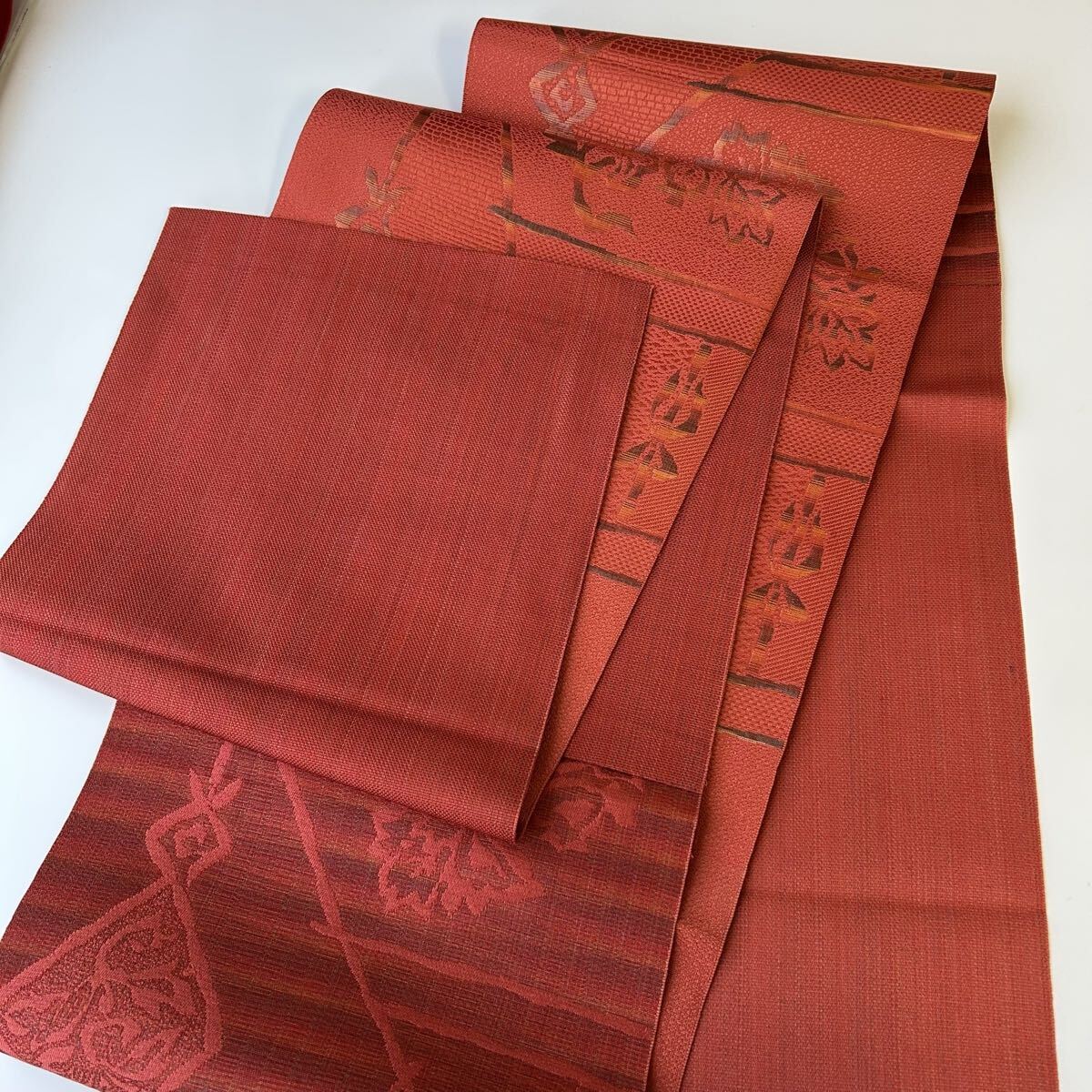 【楓】博多織 名古屋帯 正絹 粋な織柄 八寸 KK-1726