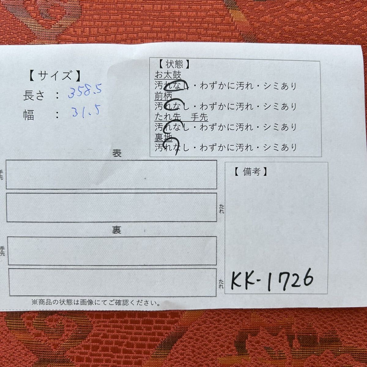 画像内に検品表を掲載しております。