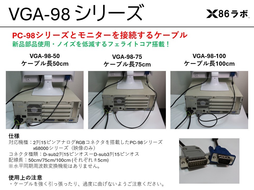 PC-98シリーズ/x68000シリーズのアナログRGB出力をVGAに変換するケーブルです。