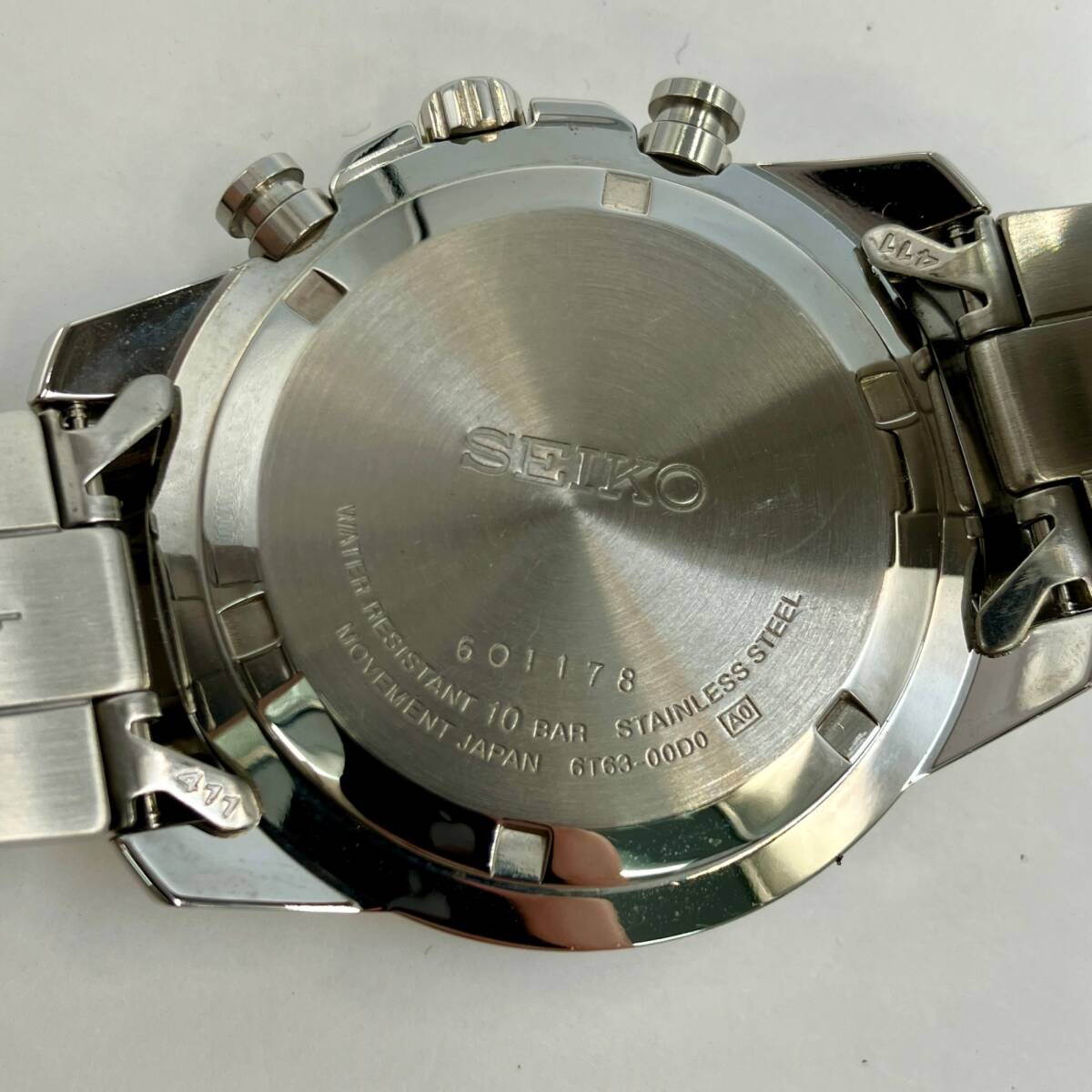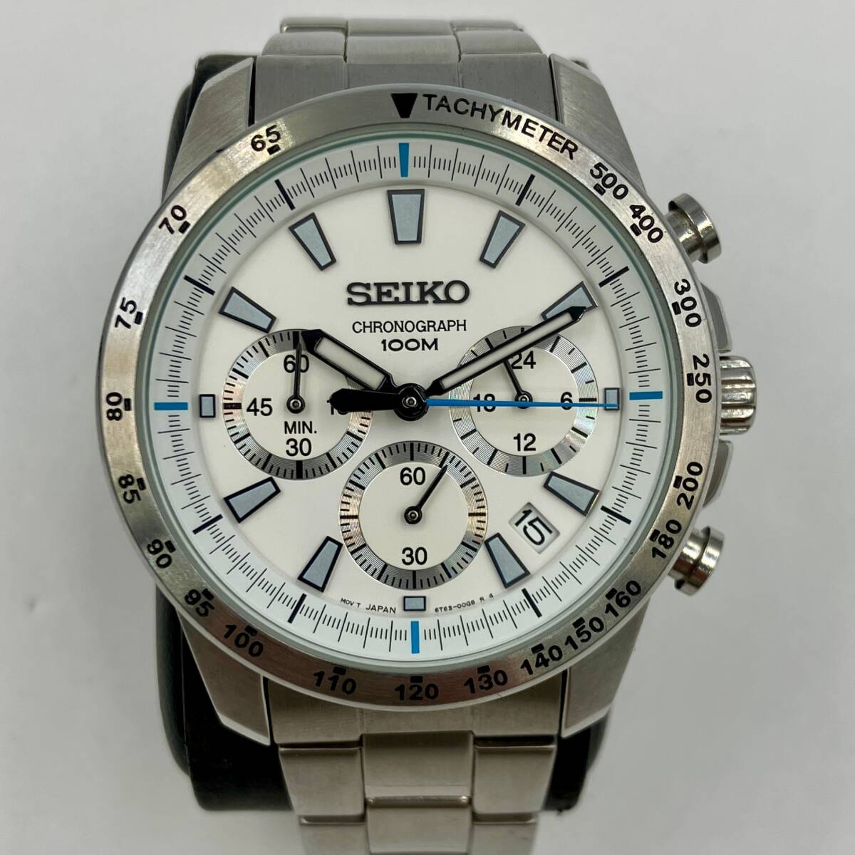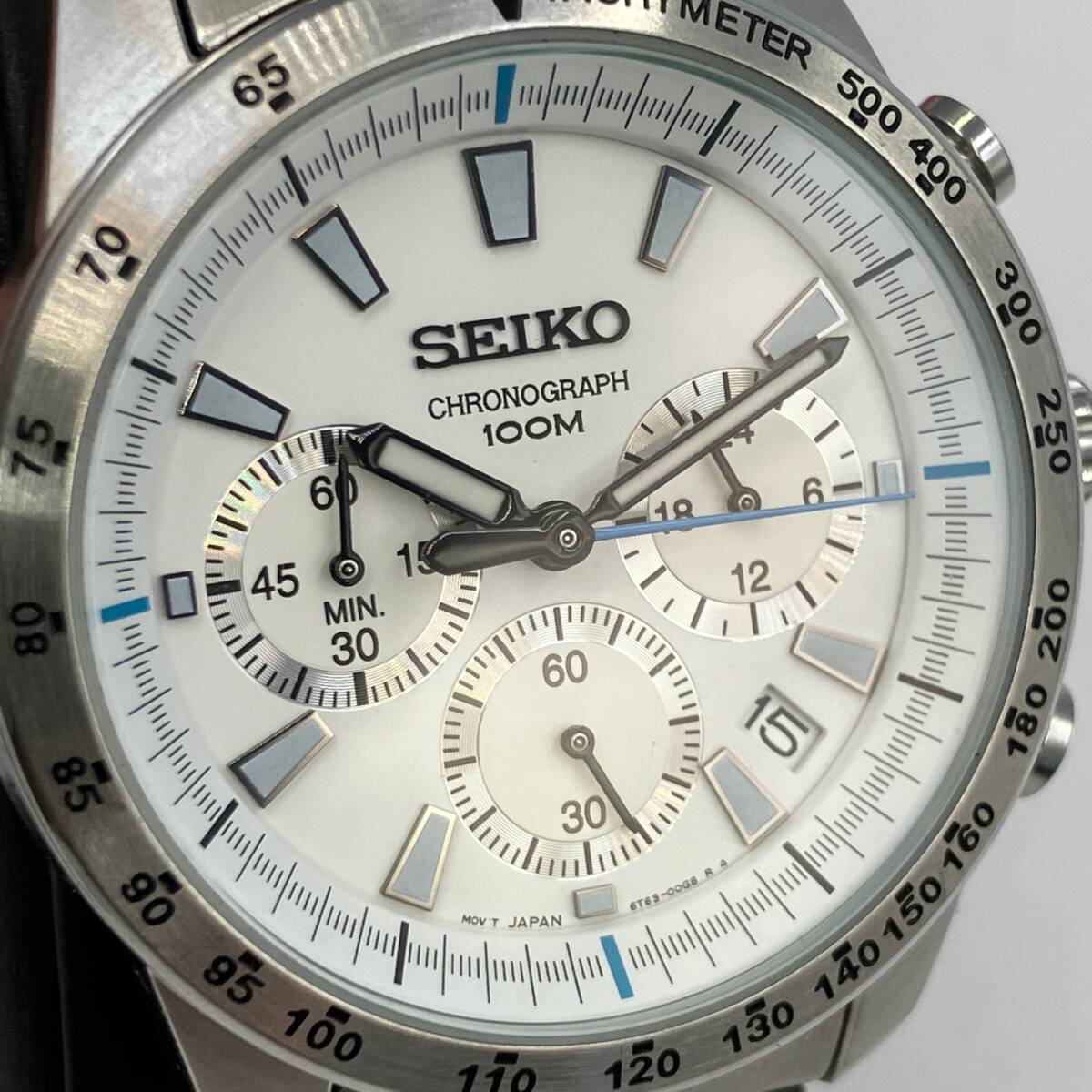 稼働品 SEIKO 6T63-00D0 セイコー クロノグラフ 白文字盤 アナログ クオーツ時計 10気圧防水 メンズ腕時計 #17895