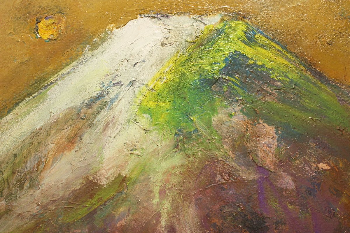 【董芸】炎の陶人 心象画家 月形 那比古 晩期(1991年) 筆 『富士』油絵 12号 真作保証 [10761]