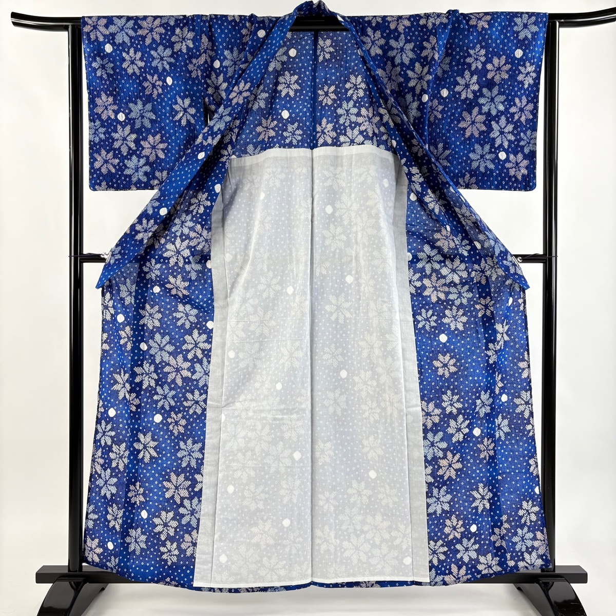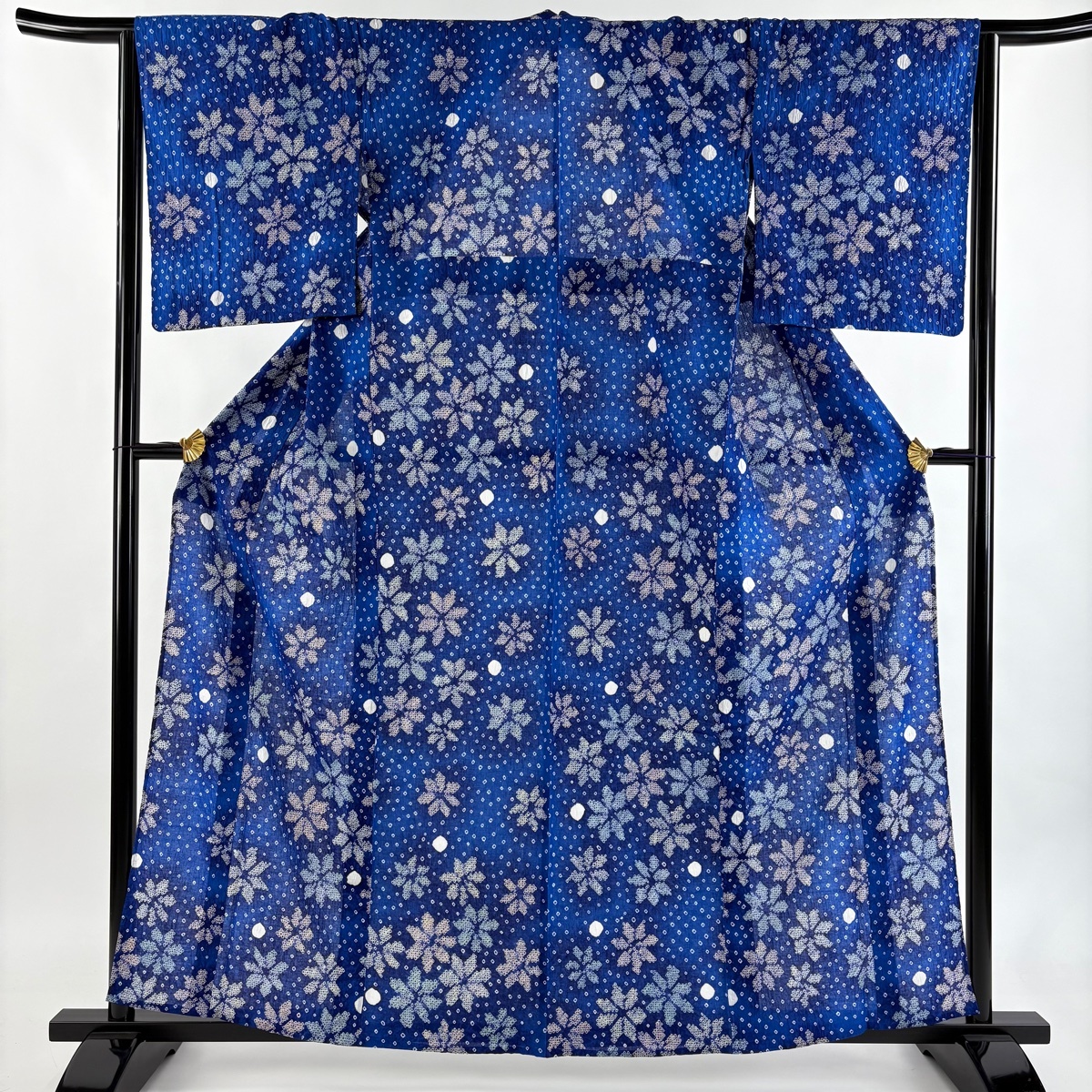 | 浴衣 美品 名品 絞り浴衣 花 幾何学模様 青 身丈160.5 裄丈64.5 M 綿 【中古】 |