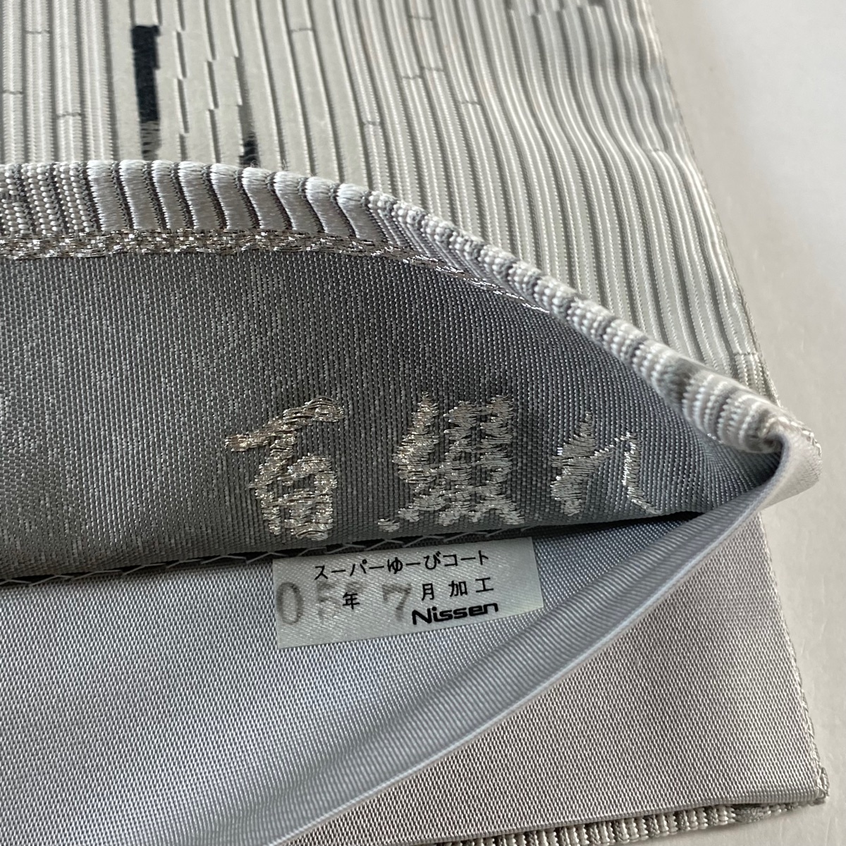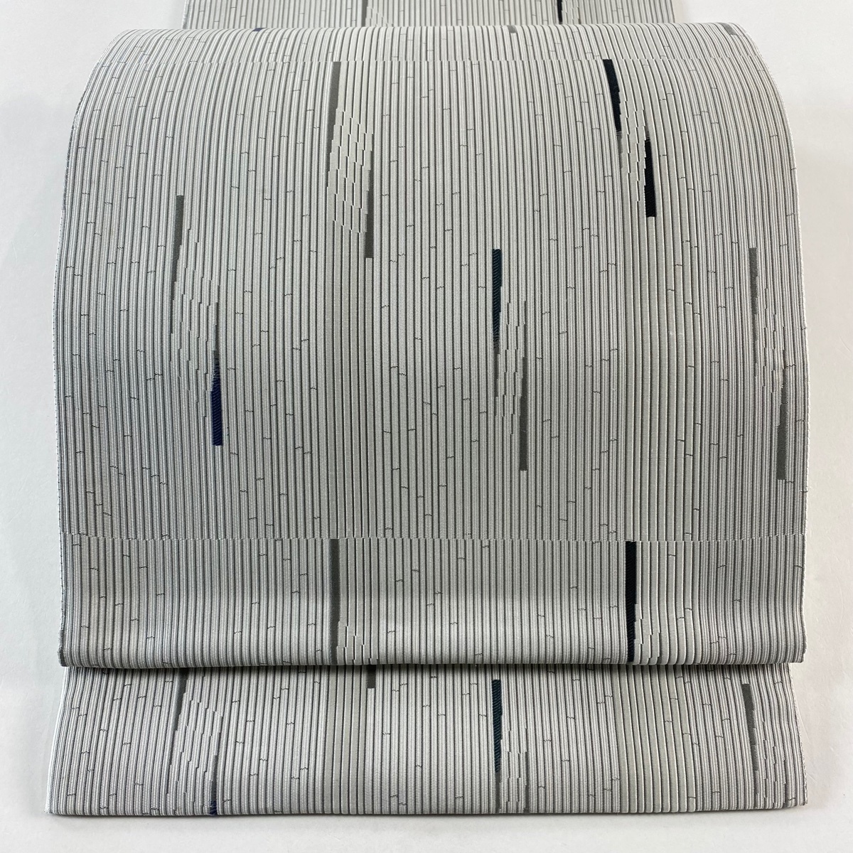 | 袋帯 名品 百綴れ 縞 幾何学 灰色 六通 正絹 【中古】 |
